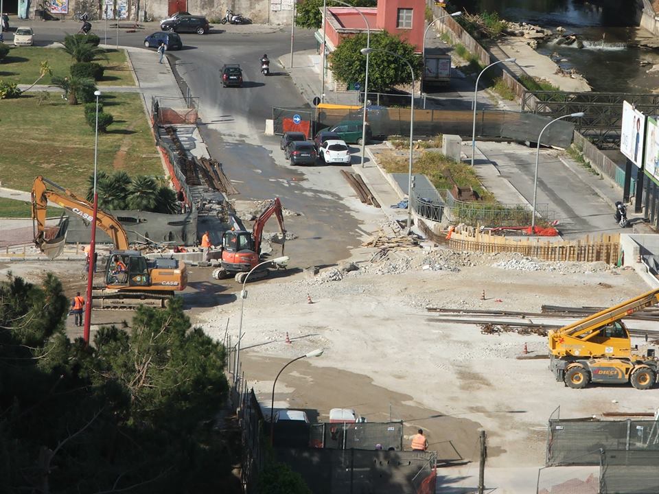 Nei pressi dell’area di Ponte Ammiraglio si sta completando i lavori di definizione dei marciapiedi e della sede tramviaria per permettere l’apertura di una parte della piazza, al momento area di cantiere, che permetterà di migliorare la viabilità della zona.