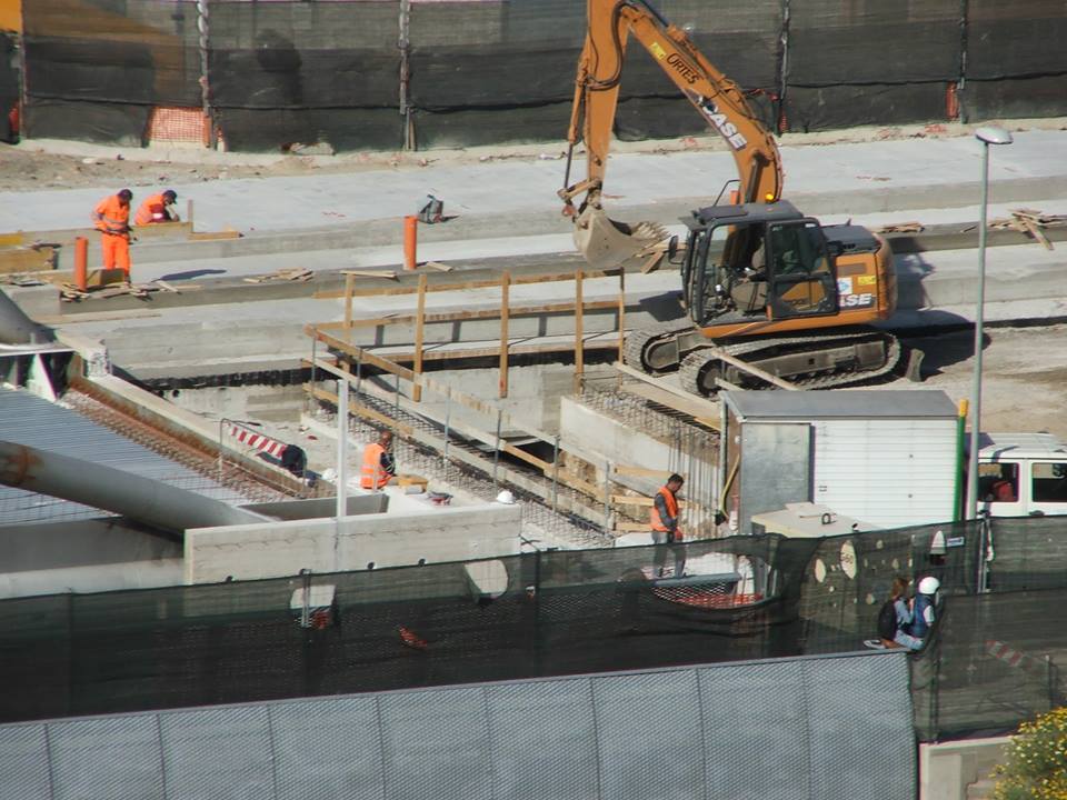Lato stazione invece si è già realizzata la soletta al di sopra della quale transiterà il tram e al di sotto della quale si trovano i resti del vecchio ponte, resti che grazie al nuovo corridoio di accesso saranno disponibili in qualsiasi momento.