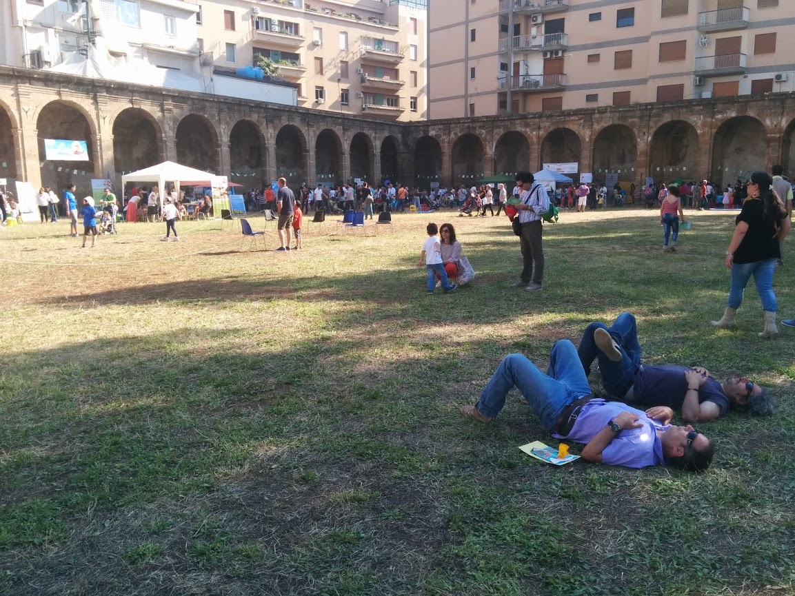 Entro, non sono sudato. Finalmente scopro che per un evento Villa filippina è stata aperta, tutta! Non mi era mai capitato di accedere a tutto il prato e al loggiato in fondo. Musica, movimenti e odori. Mi sembra un posto bellissimo, più di quanto non lo sia di suo. Ci trovo gente che dorme sul prato, bambini che ballano e pure una stanza dedicata al planetario. Ho pure il tempo di “ammuccarmi” tre mozzarelline gentilmente offerte da un rivenditore.