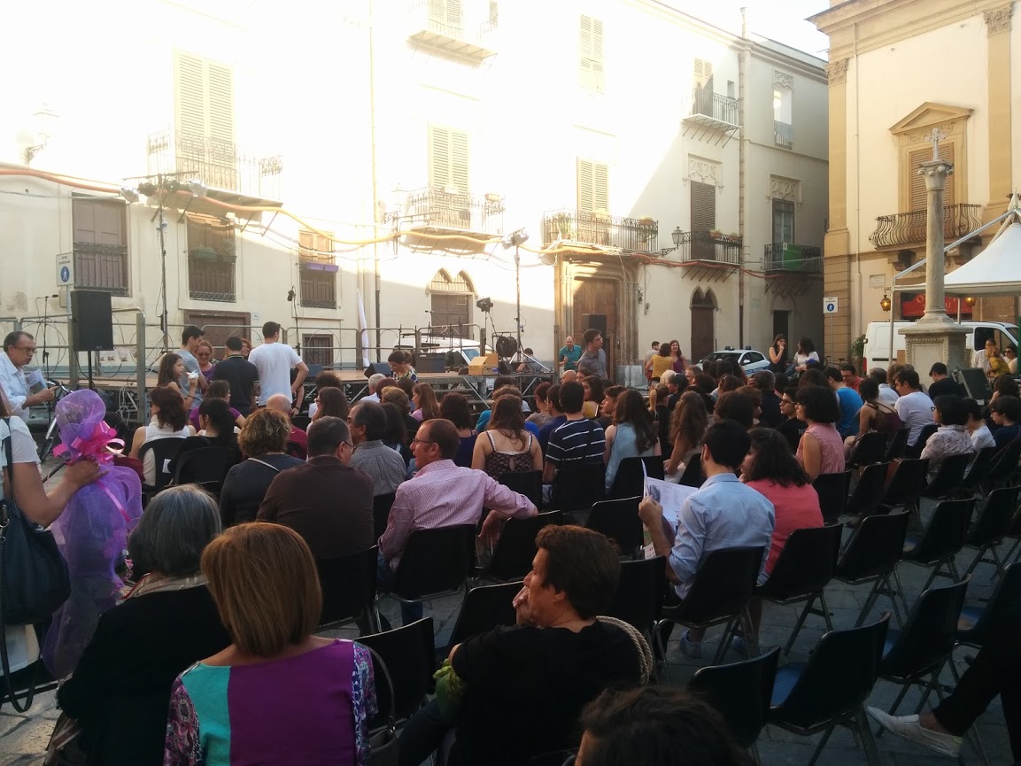 Troppe persone si dirigevano verso l’altra piazza, Croce dei Vespri. O c’era il posteggio delle auto oppure qualcos’altro. Un palco, tante persone sedute, altri spettacoli. E sullo sfondo altre carovane che salivano dai vicoli direzione mare.