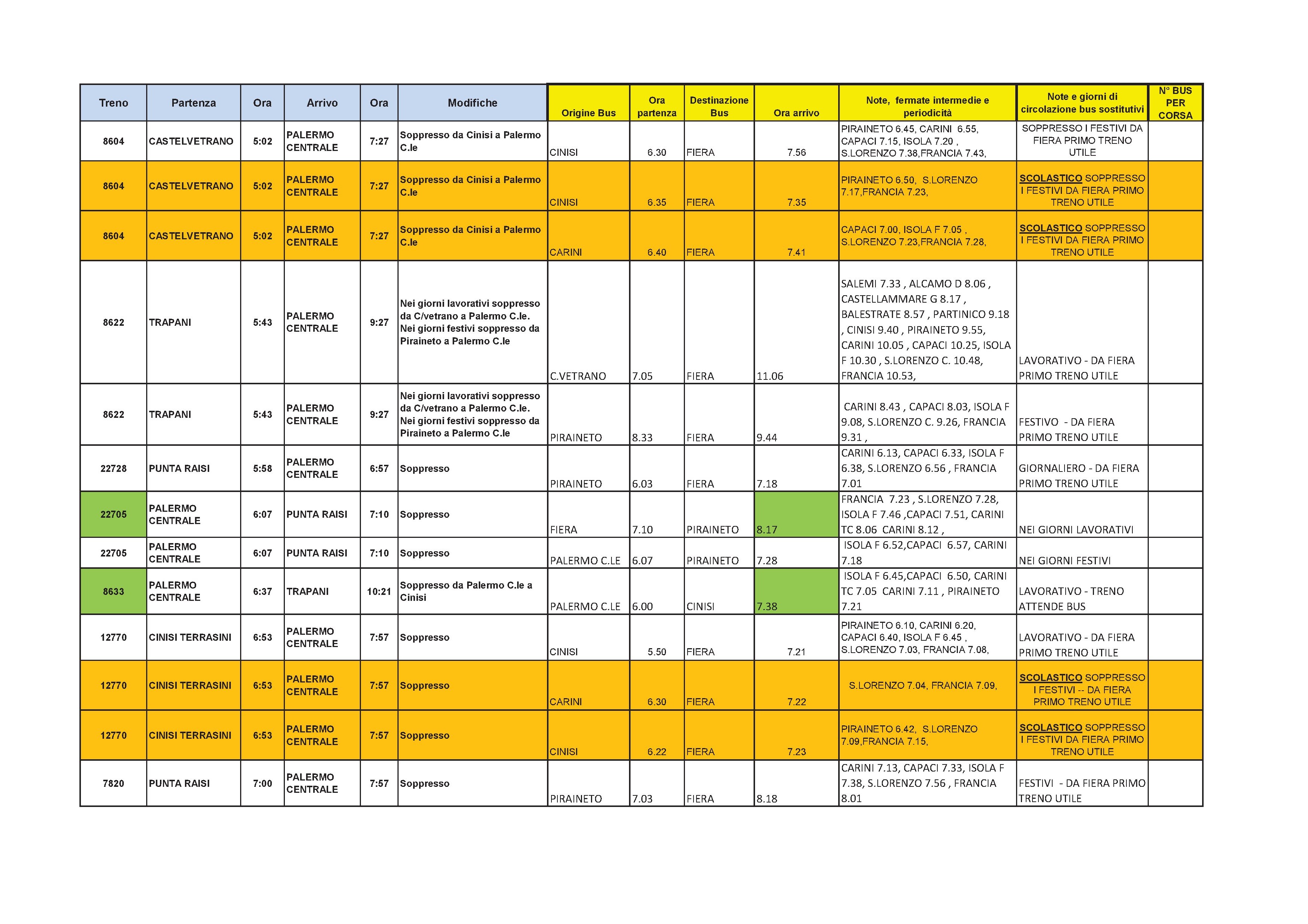 Ringraziamo l’Assessorato alle Infrastrutture e Trasporti, Trenitalia e Comune di Palermo per aver partecipato attivamente a trovare una soluzione.
