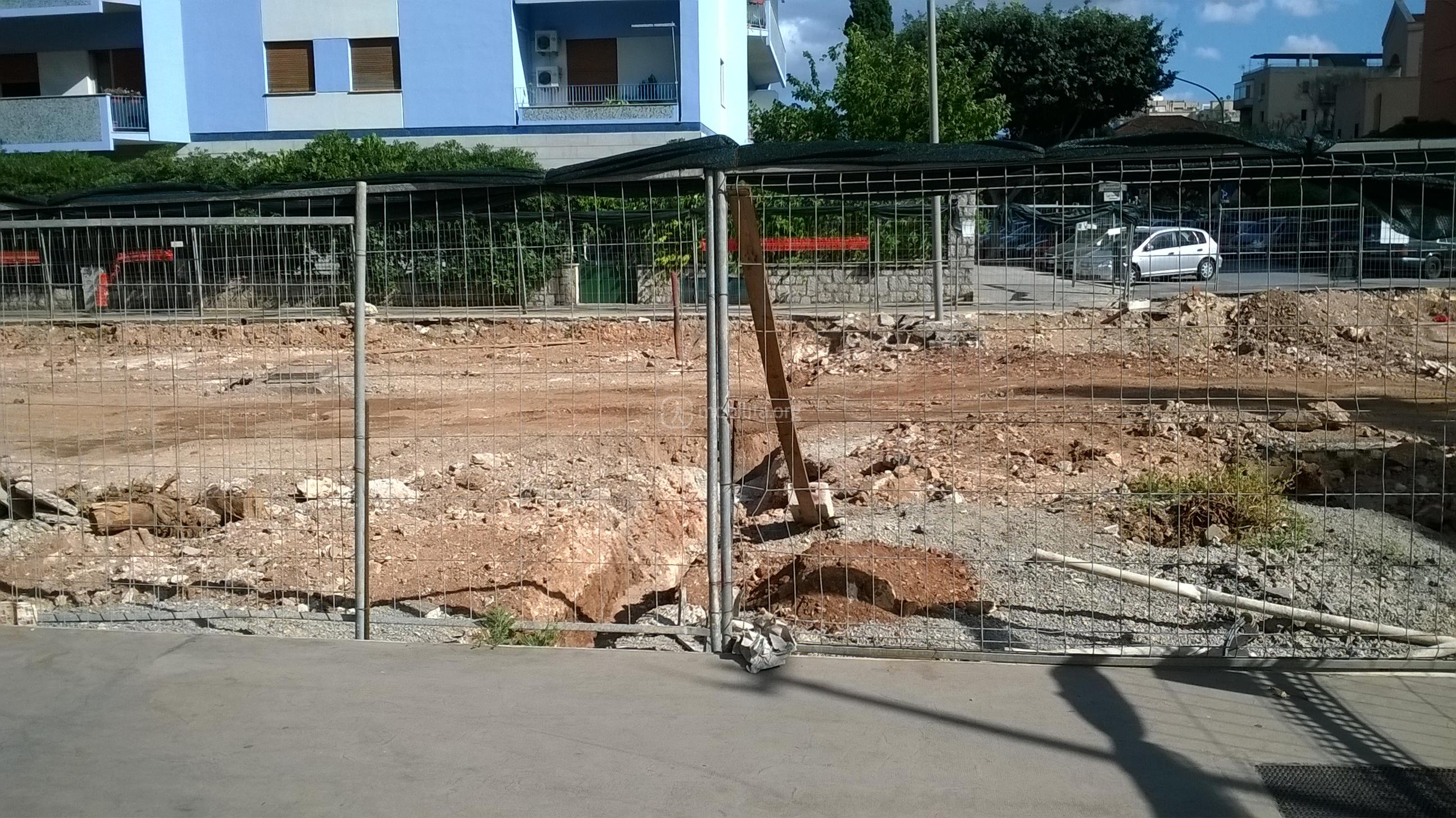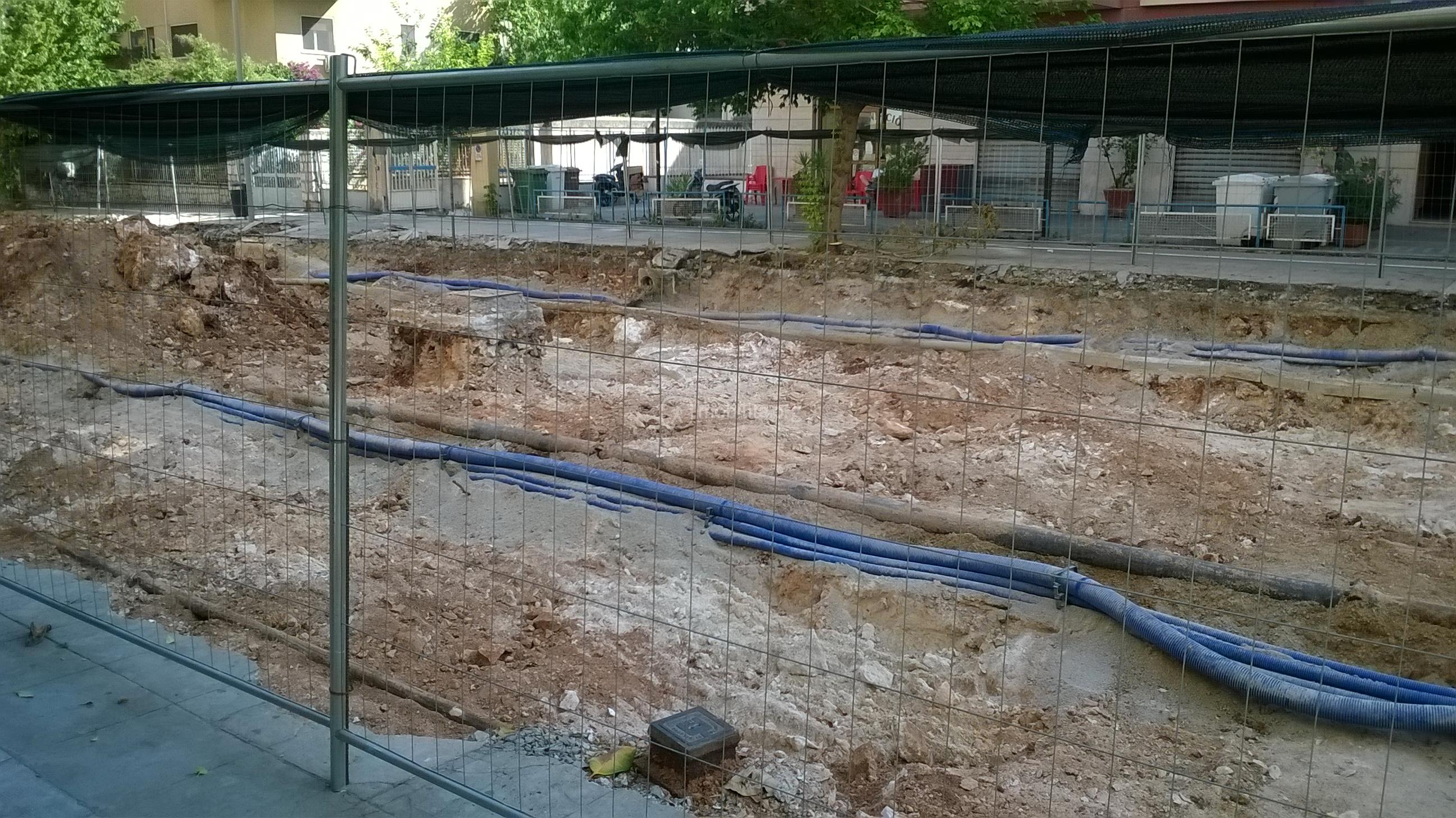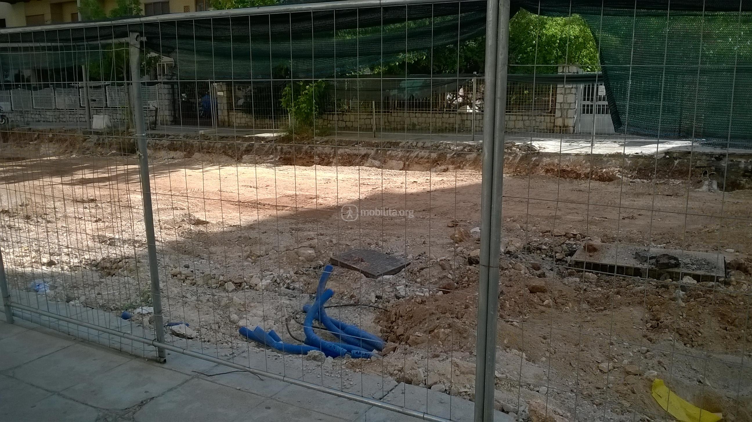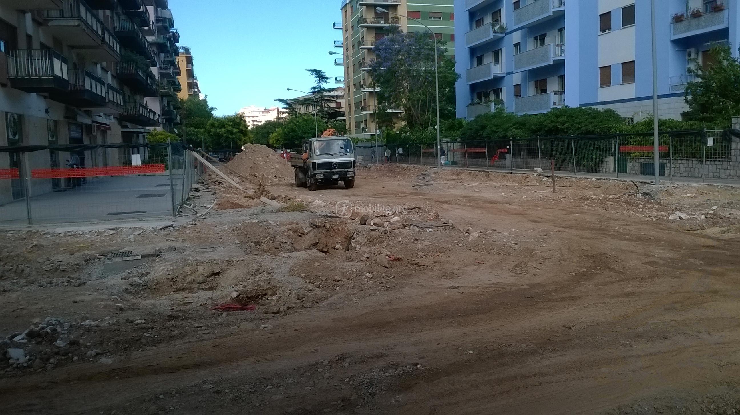 La trincea è larga perché i sottoservizi qui come in via Amari si trovano al centro della strada.