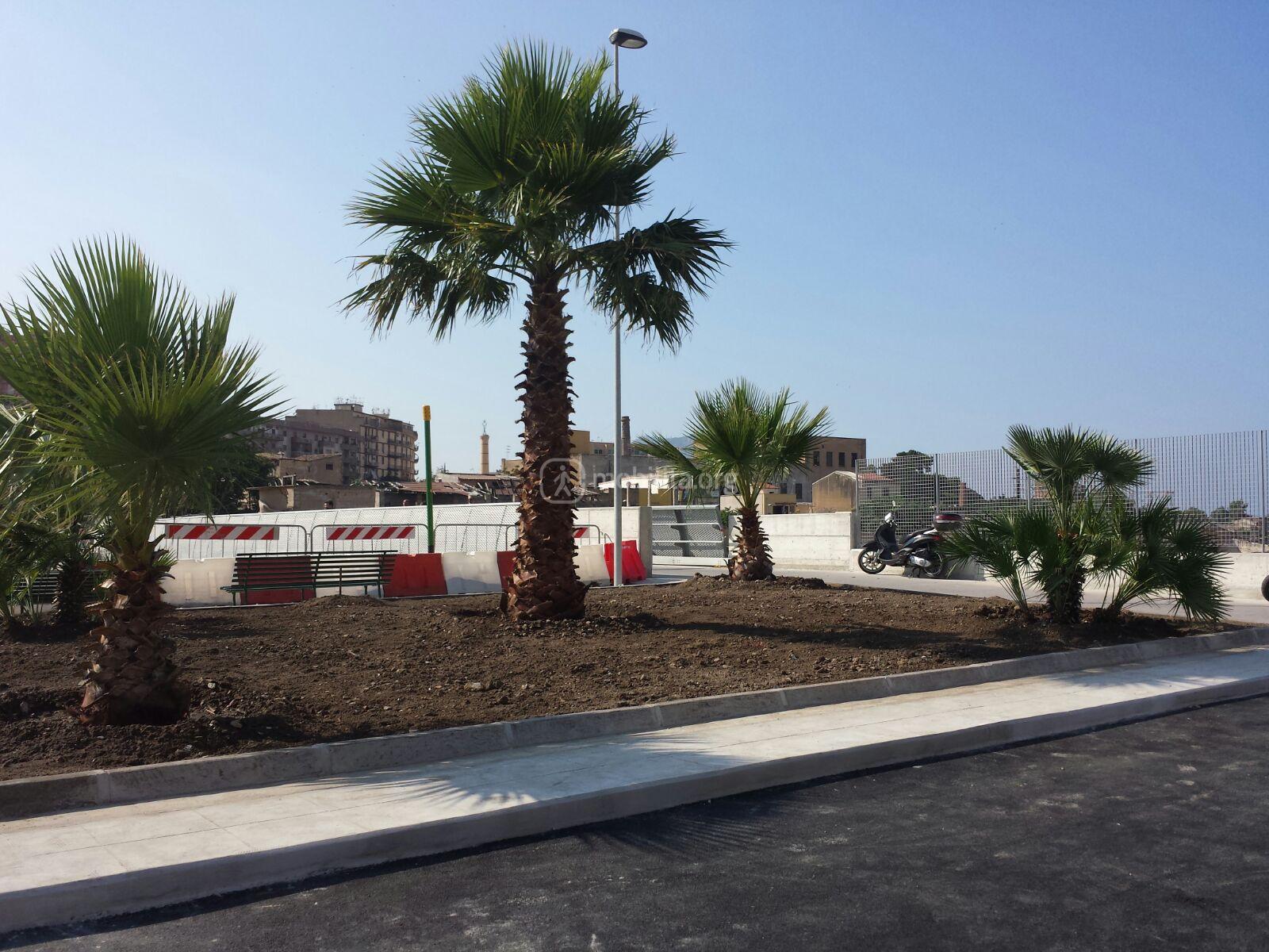 Comunque nel caso non si fosse capito, è un’aiuola rettangolare totalmente nuova con marciapiedi totalmente ricostruiti e 5 elegantissime palme piantumate al suo interno, alle quali se ne aggiungeranno due nell’altra aiuola.
