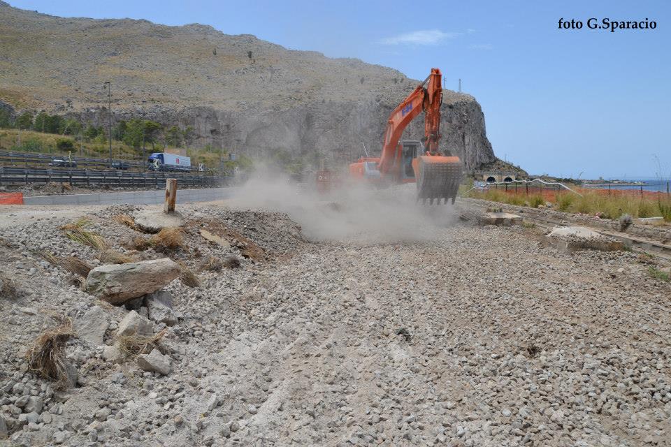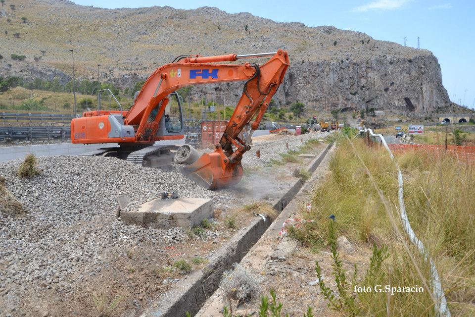 Vi mostriamo alcune immagini del cantiere del Passante Ferroviario lungo la SS113, fra le due gallerie autostradali. I lavori consistono nello smantellamento dei vecchi binari, nel rifacimento di tutta la sede ferroviaria ma soprattutto nell’adeguamento della vecchia galleria Sferracavallo (quella chiusa appartenente alla vecchio tracciato) in modo da attivare il transito su entrambi i binari.