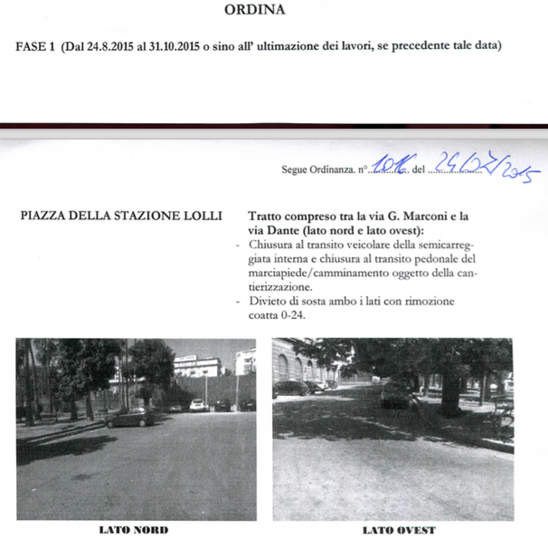 Secondo infatti una recente ordinanza pubblicata dall’ufficio traffico inizieranno da Lunedì 24 Agosto i lavori di rifacimento del giardino di Piazza Lolli.