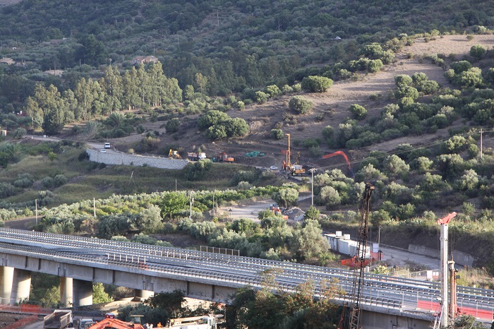 Dopo il completamento delle operazioni preliminari che hanno riguardato la dismissione delle linee di alimentazione dei pali di illuminazione e l`esecuzione delle opere preliminari a protezione della nuova bretella, procedono le attività del cantiere con l`istallazione, tramite trivellazione, di pali di grosso diametro a profondità variabile a sostegno del rilevato.