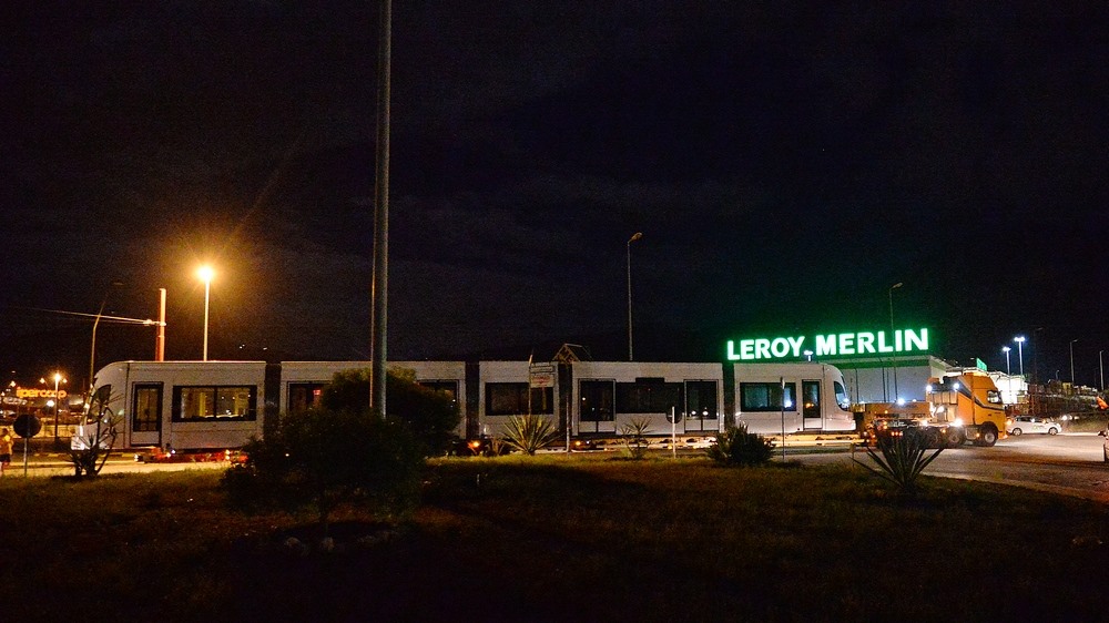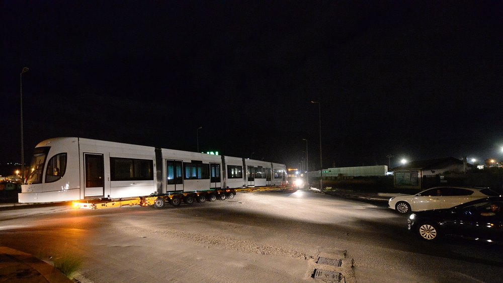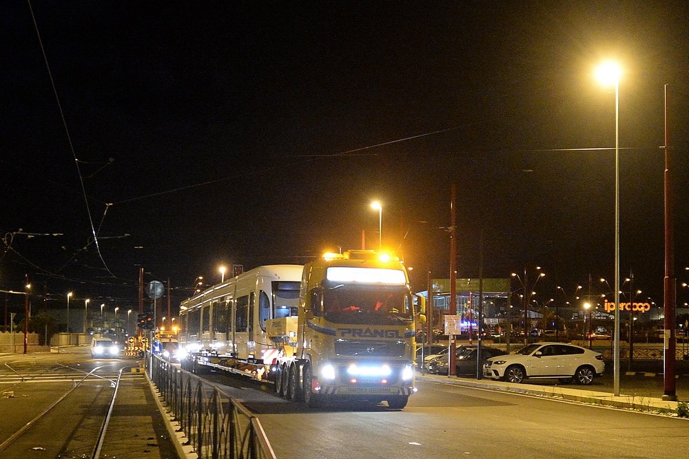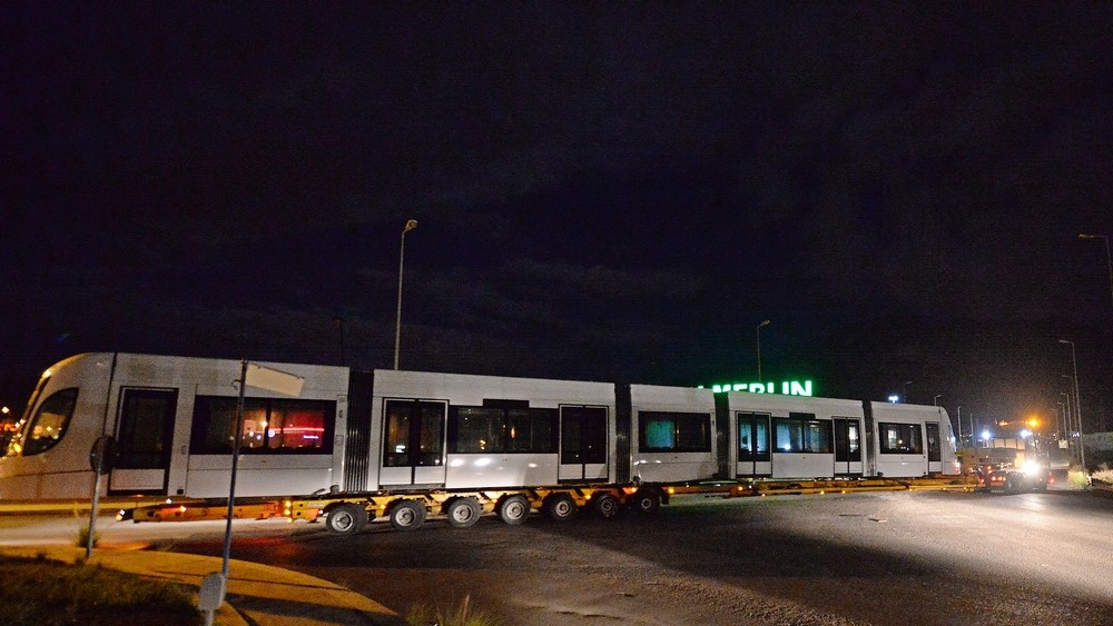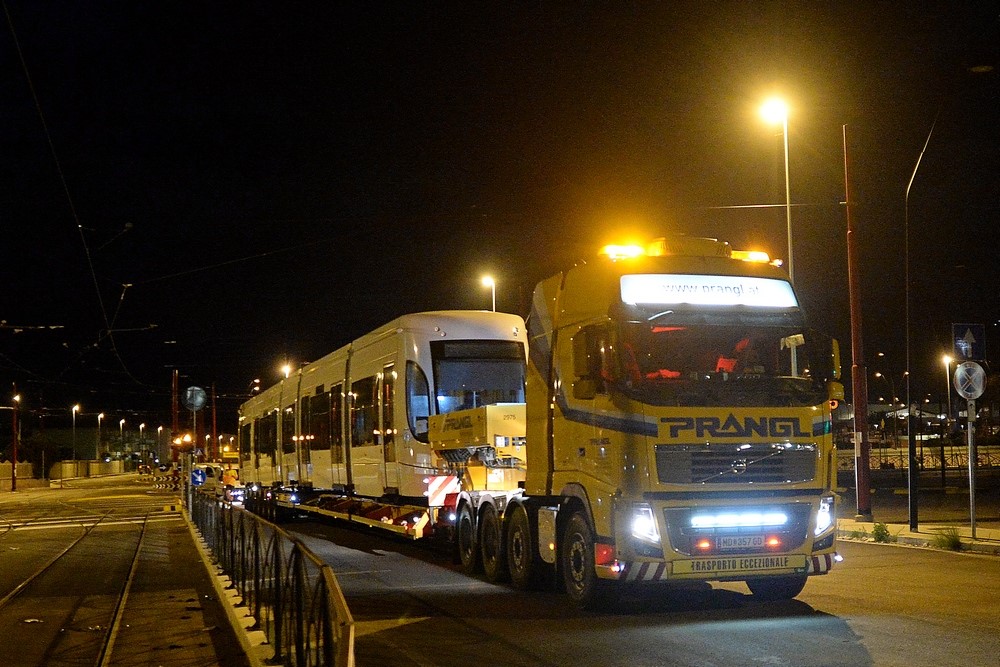 I convogli hanno lasciato di notte il deposito di Roccella su un carrello per il trasporto speciale. Si tratta dei primi tre dei nove tram che presteranno servizio sulle linee 2 e 3 della rete Tram.