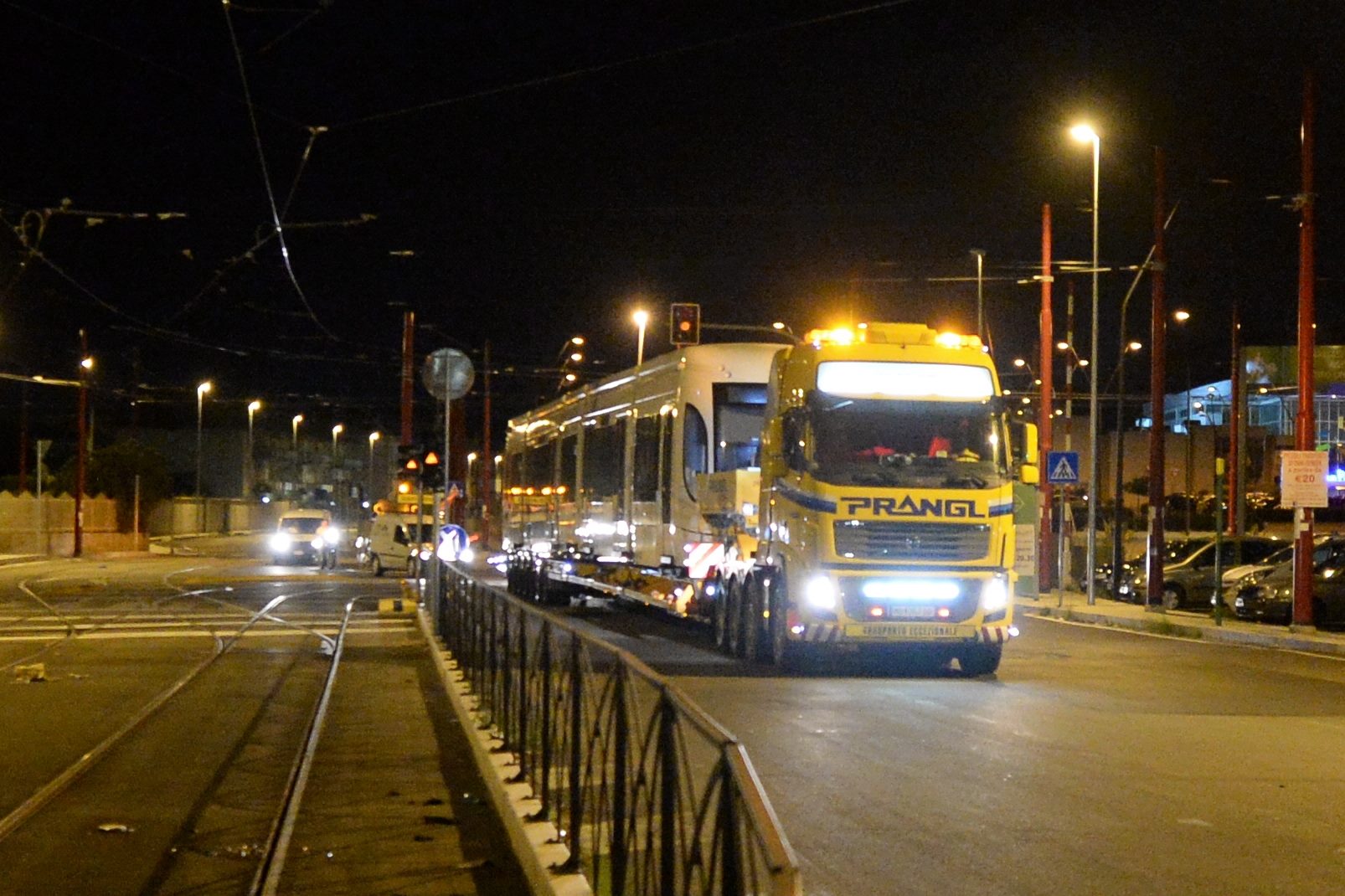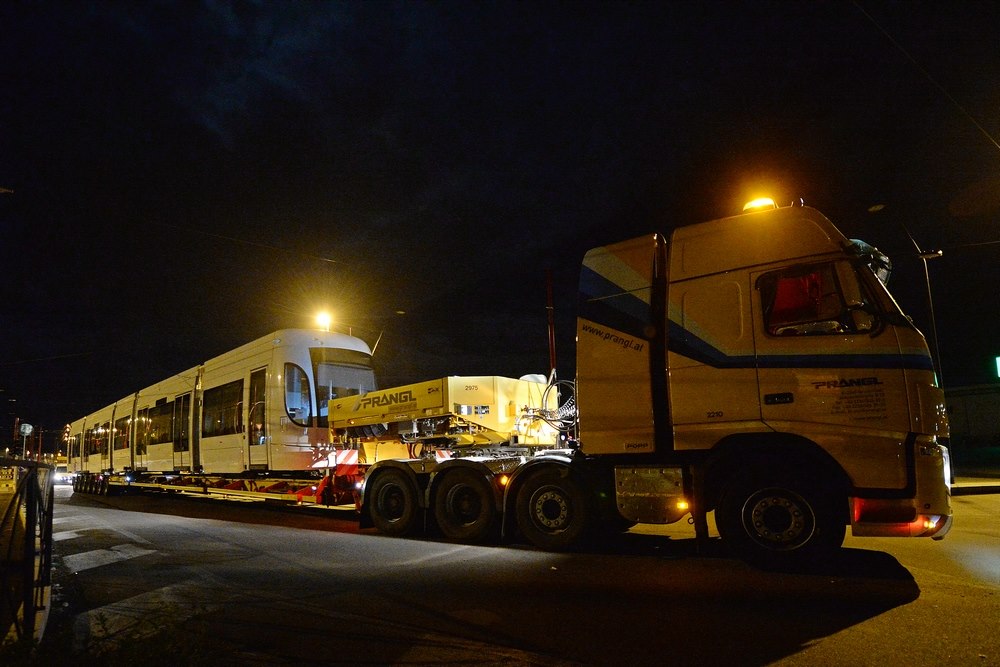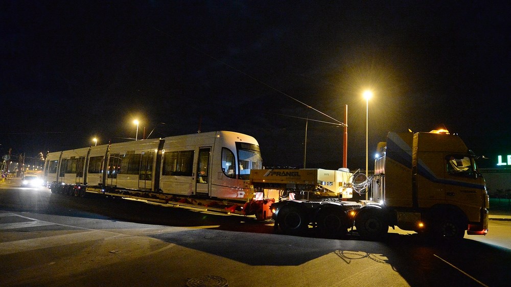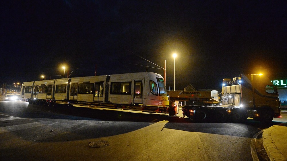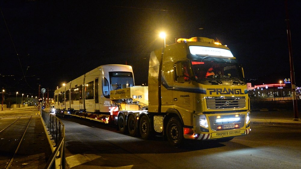 I convogli hanno lasciato di notte il deposito di Roccella su un carrello per il trasporto speciale. Si tratta dei primi tre dei nove tram che presteranno servizio sulle linee 2 e 3 della rete Tram.