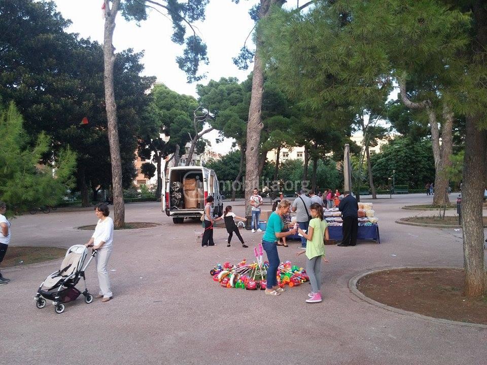 Ci chiediamo come sia possibile che all’interno di un giardino comunale ci si ritrovi davanti a queste scene, bancarelle abusive piazzate all’interno del giardino senza alcuna autorizzazione, senza alcuna determina.