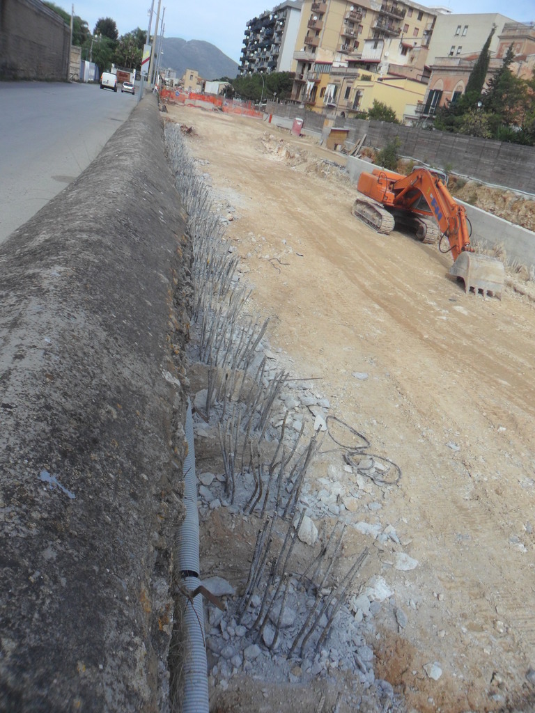 Un aggiornamento fotografico dalla zona di San Lorenzo dove sono in corso i lavori di interramento della vecchia linea ferrata. Le immagini ritraggono il cantiere a ridosso fra via Nuova e piazzale Francia, dove è in corso la realizzazione della soletta del futuro tunnel. Si notano i pali di fondazioni lateralmente, e che costituiscono le pareti della nuova linea. Prende anche forma la futura trincea presso il piazzale antistante la stazione S. Lorenzo Colli. Ricordiamo infatti che la linea verrà totalmente interrata, con doppio binario; a San Lorenzo Colli invece la trincea ferroviaria sarà a cielo aperto.