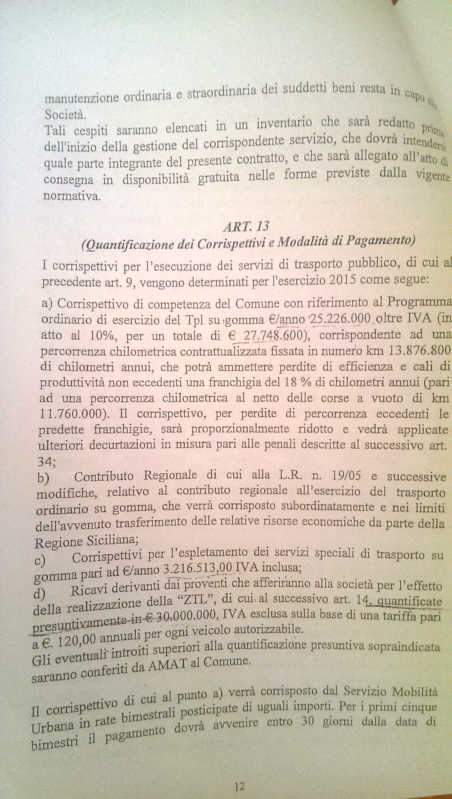 Ma ecco che all’art.13 vengono indicati tutti i corrispettivi che Amat incasserà tramite il contratto di servizio.