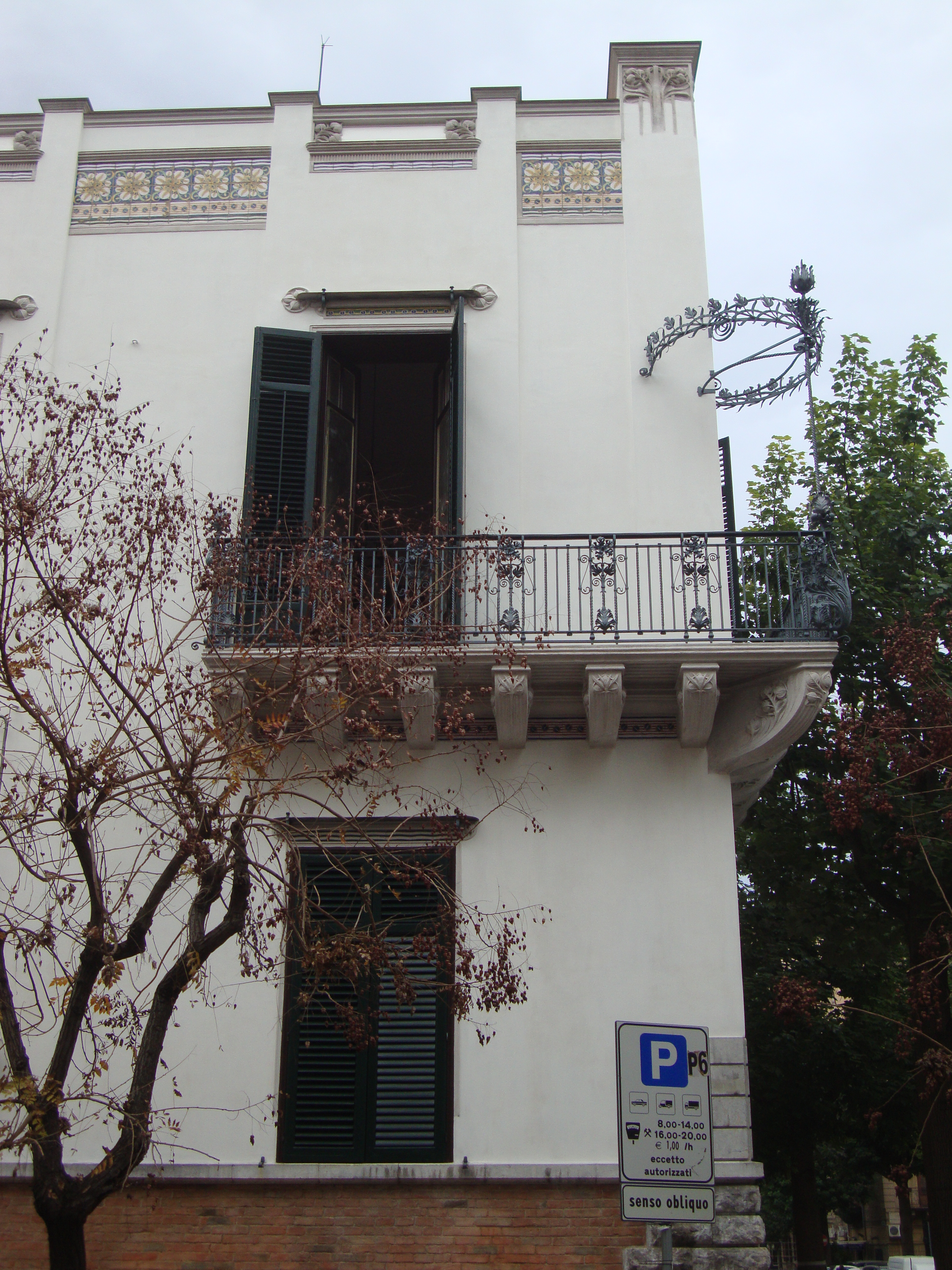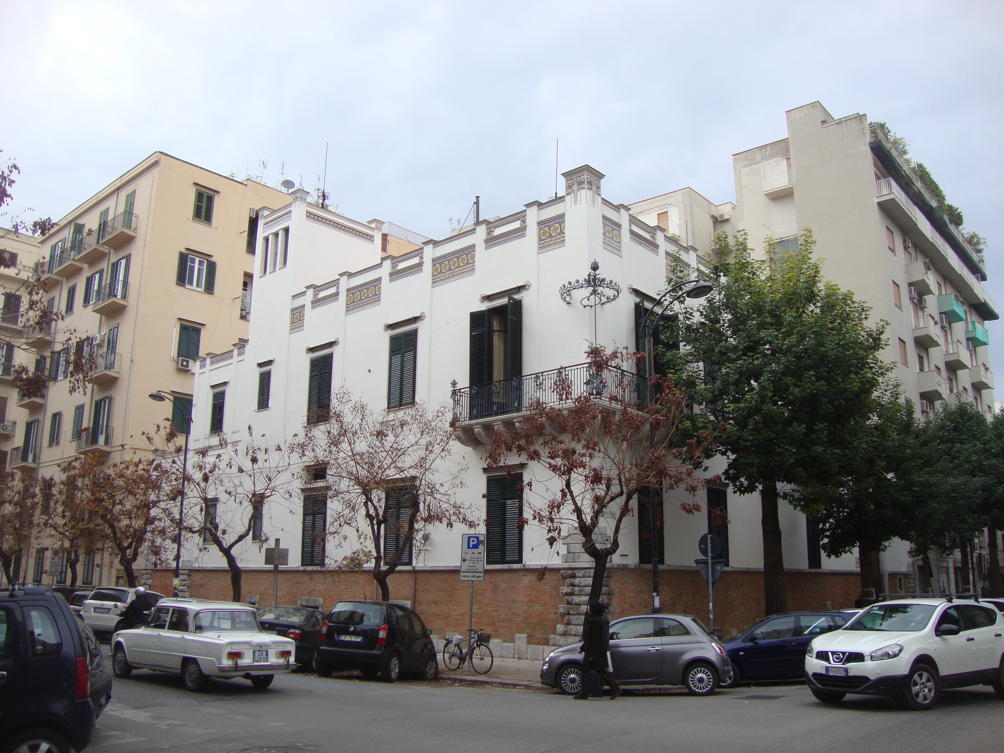 I dettagli sono splendidi, il portale, il balcone d’angolo, i ferri battuti, le mensole dei balconi, le maioliche. La muratura totalmente liscia al basamento, a livello del secondo piano si divide nella partitura ottenuta mediante lesene appena accennate che quasi emergono dalla muratura, e che, secondo una tipica soluzione basiliana proseguono oltre il cornicione d’attico.