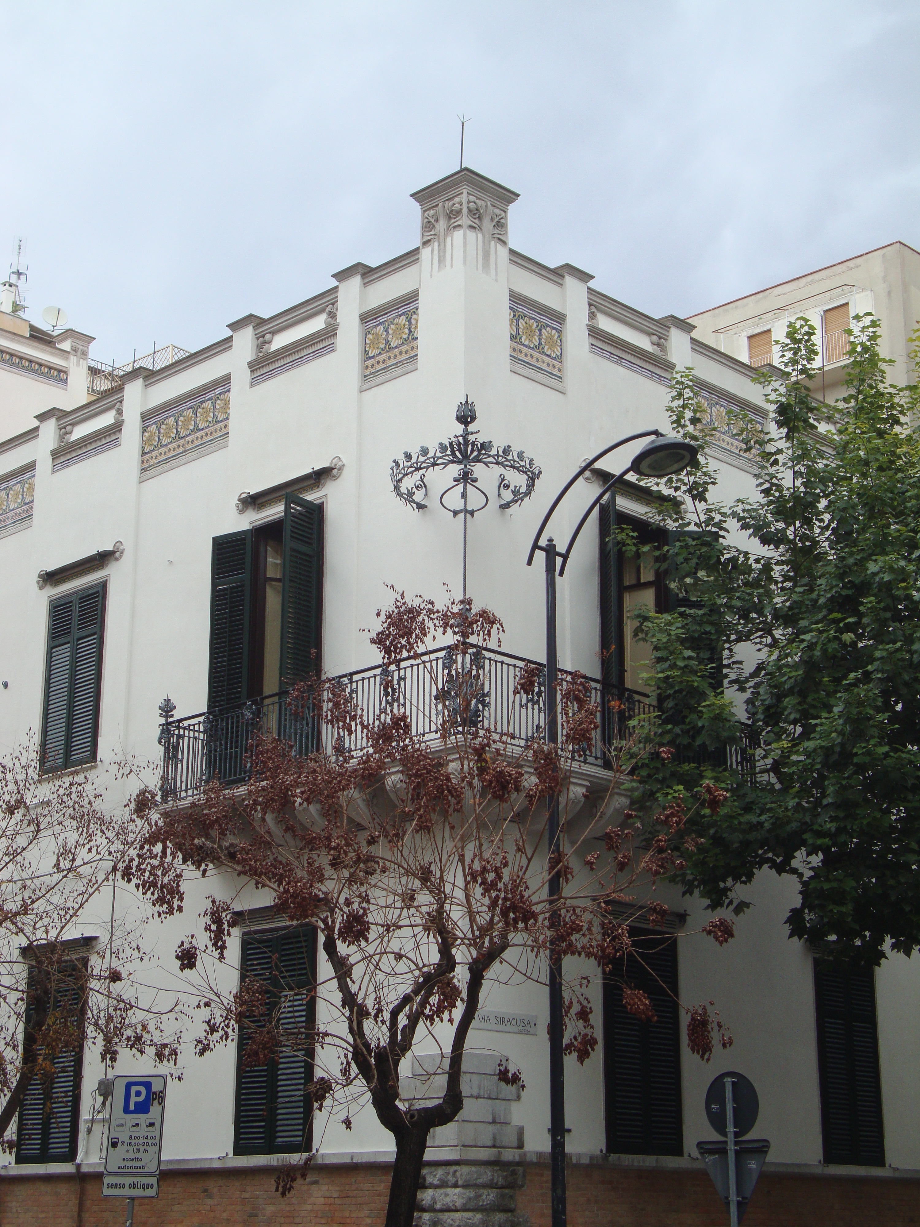 Del ciclo di “case bianche”, probabilmente uno dei momenti più alti della produzione liberty del maestro, rimane appunto la sua casa -studio in via Siracusa (1904).