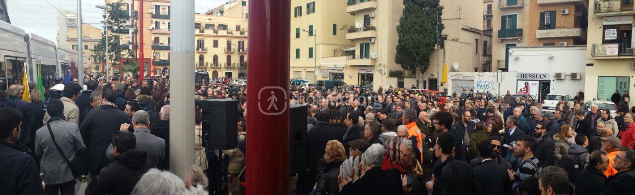 Siamo in Piazza Boiardo per seguire l’avvio ufficiale del sistema tranviario di Palermo.