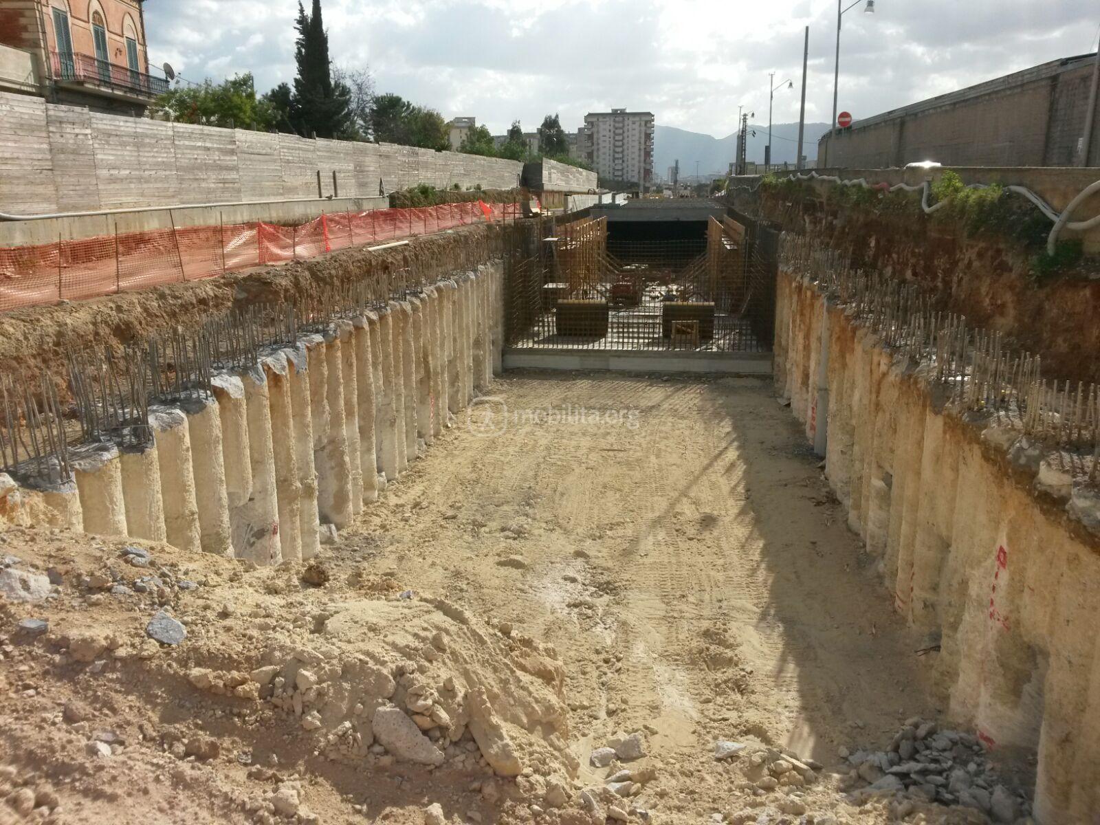 Presso la fermata Francia, terminata la realizzazione dei puntoni a doppia Y si sta iniziando anche lì lo scavo della trincea, come a Tommaso Natale.