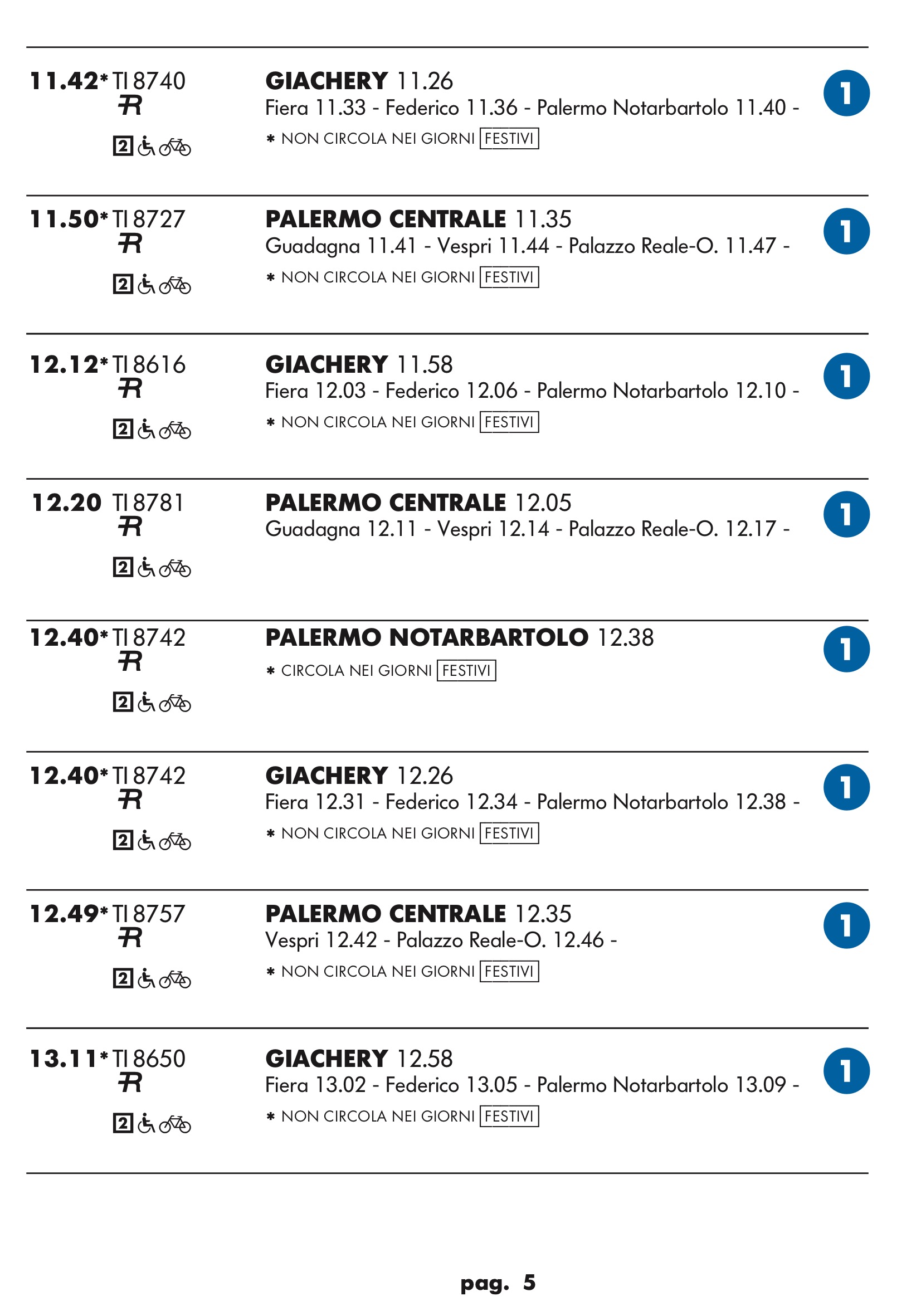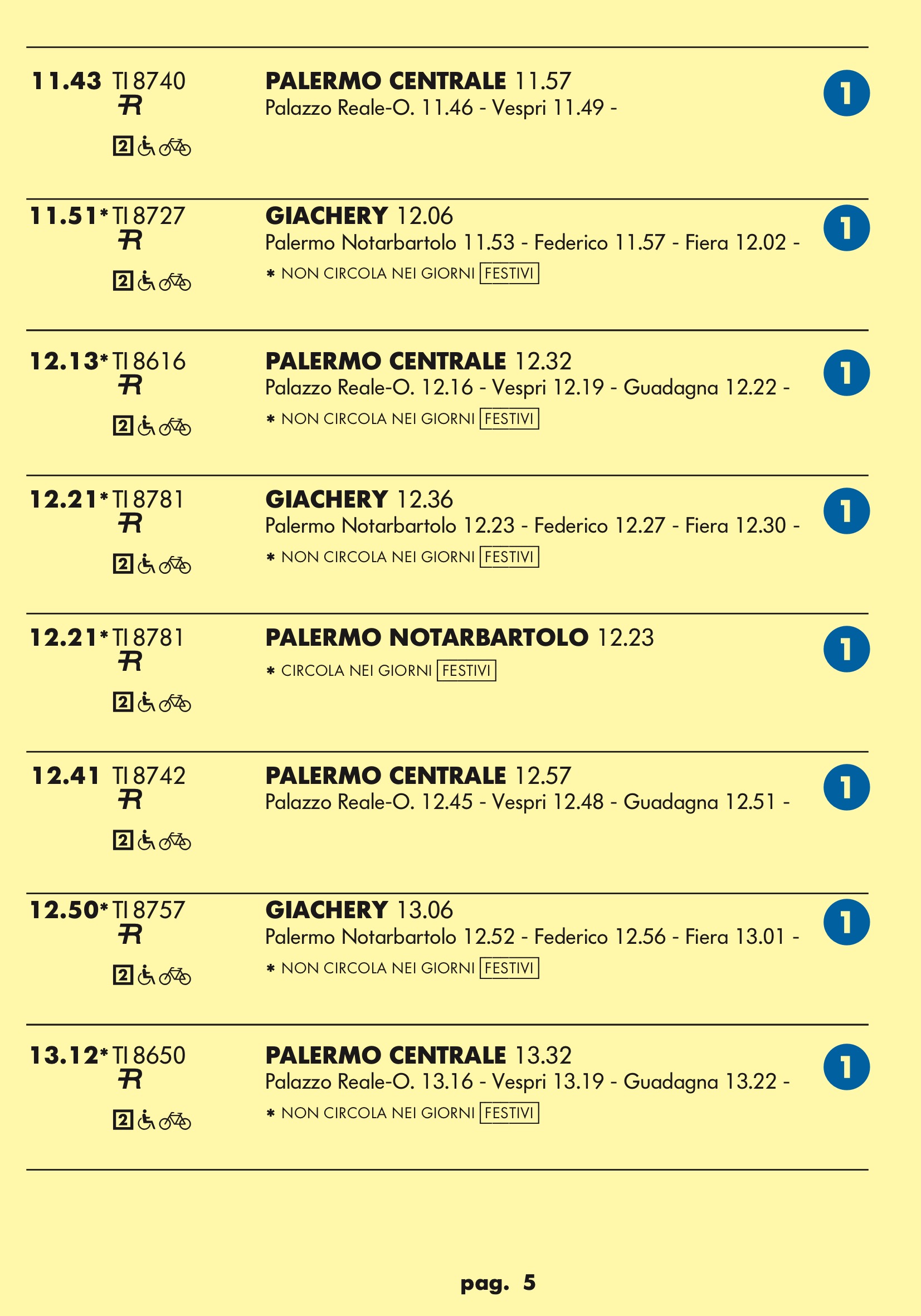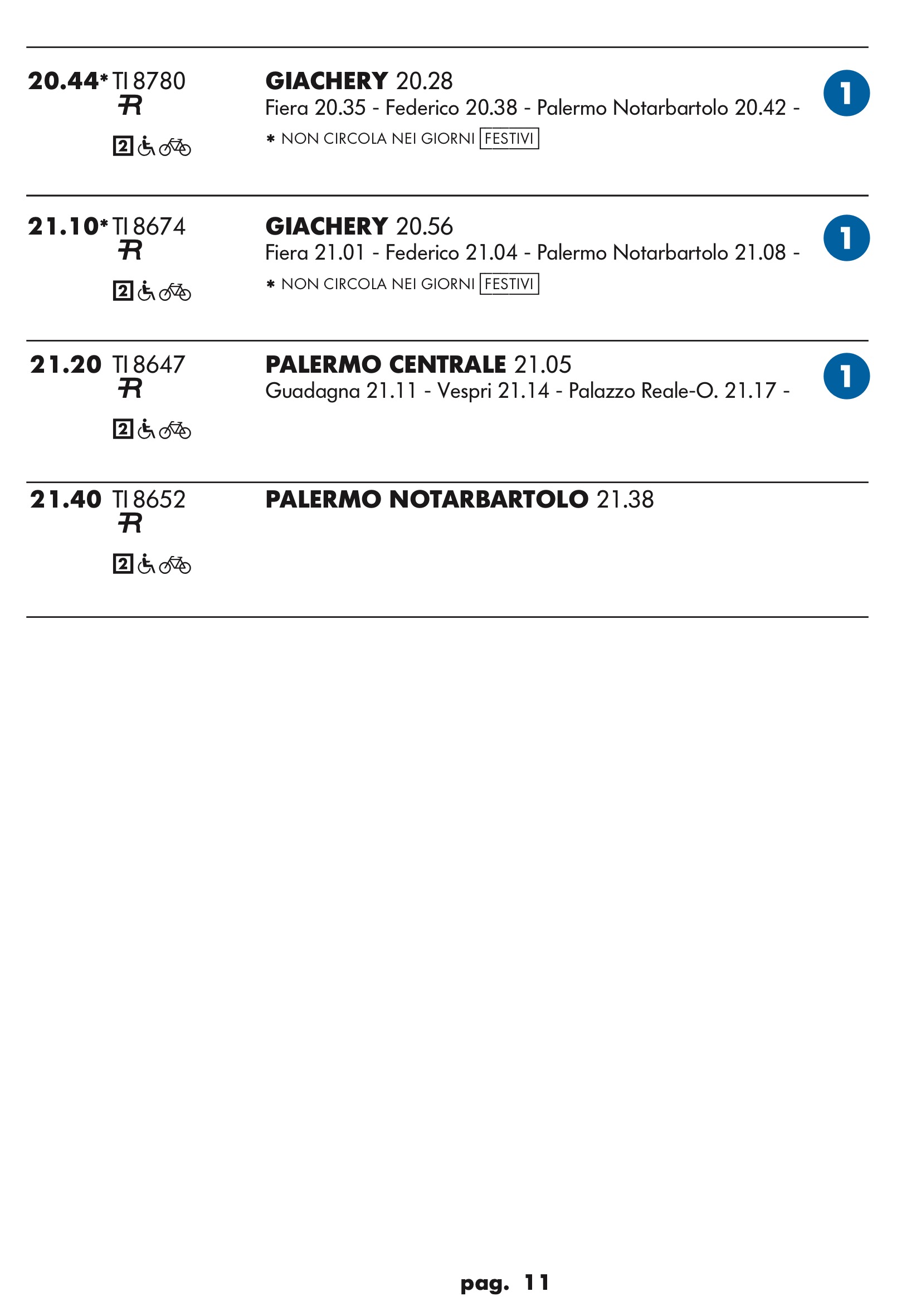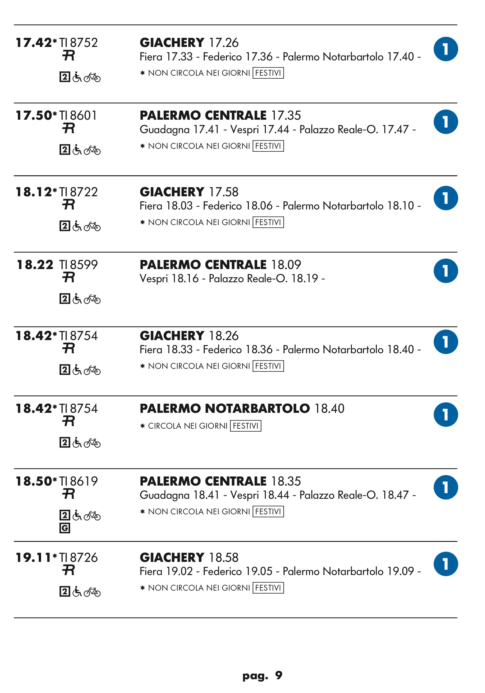 Come temevo in partenza dal binario 1 treno rapido per stazione notarbartolo.Dopo tanta attesa e disagi per i palermitani speravo in qualcosa a metà strada tra un treno ed una metropolitana.Un treno ogni mezz’ora è ridicolo.Vediamo se ora nell’anello dopo aver bloccato mezza città per anni ne faranno passare uno ogni tre quarti d’ora.