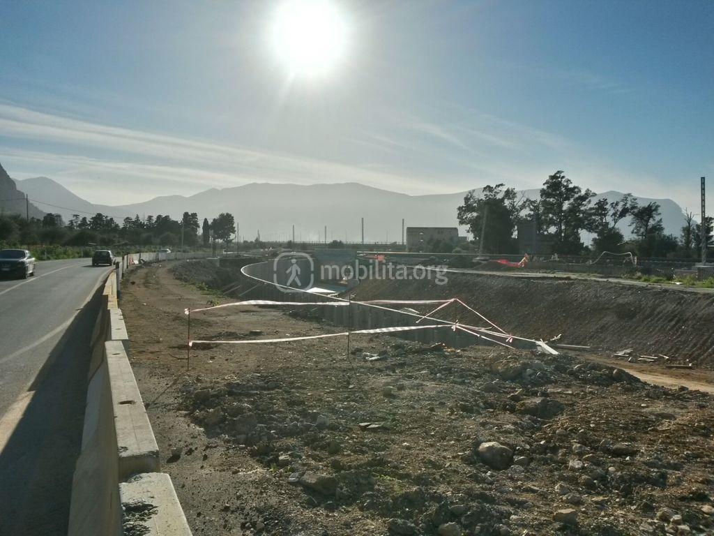 Ci troviamo sulla Strada Statale 113 e l’intervento consiste nel realizzare un nuovo sottopasso stradale per permettere al treno di transitare in superficie riducendo così i rischi di eventuali incidenti e abolire i tempi di attesa dietro ad un passaggio a livello chiuso, come accadeva fino a qualche mese fa.