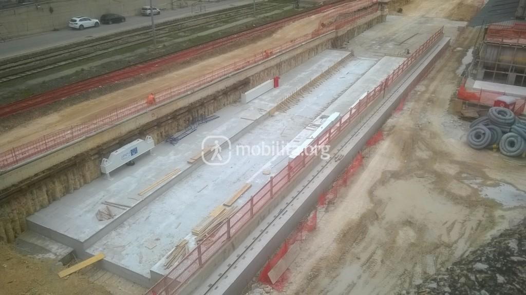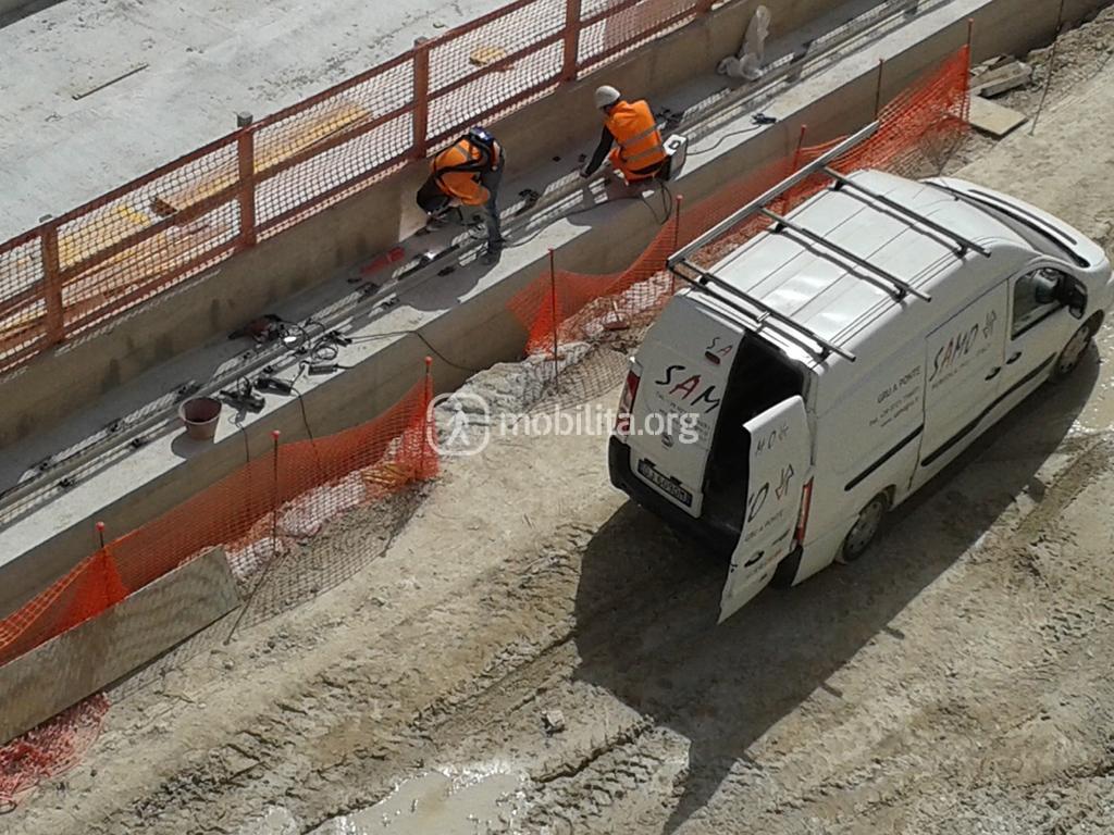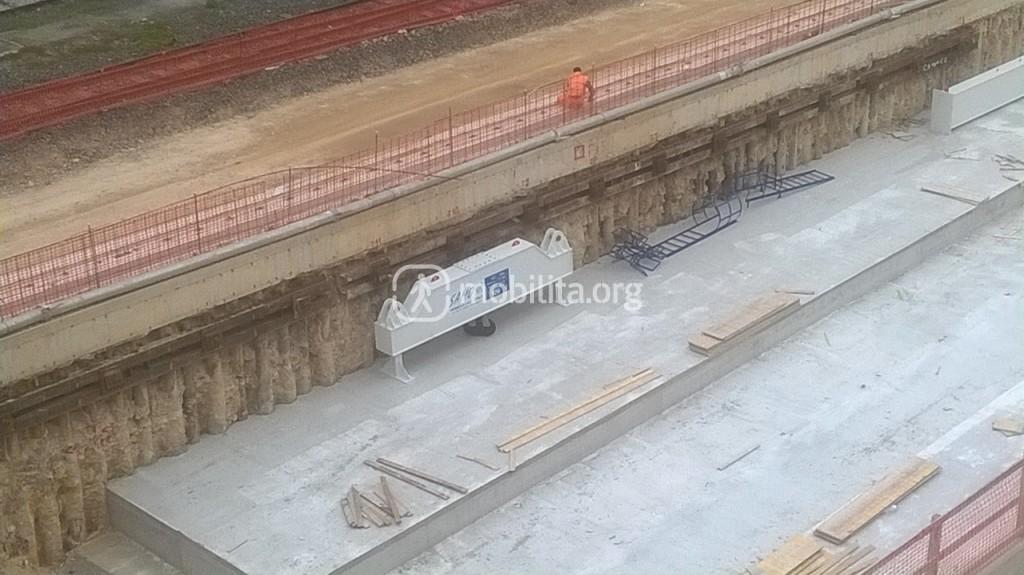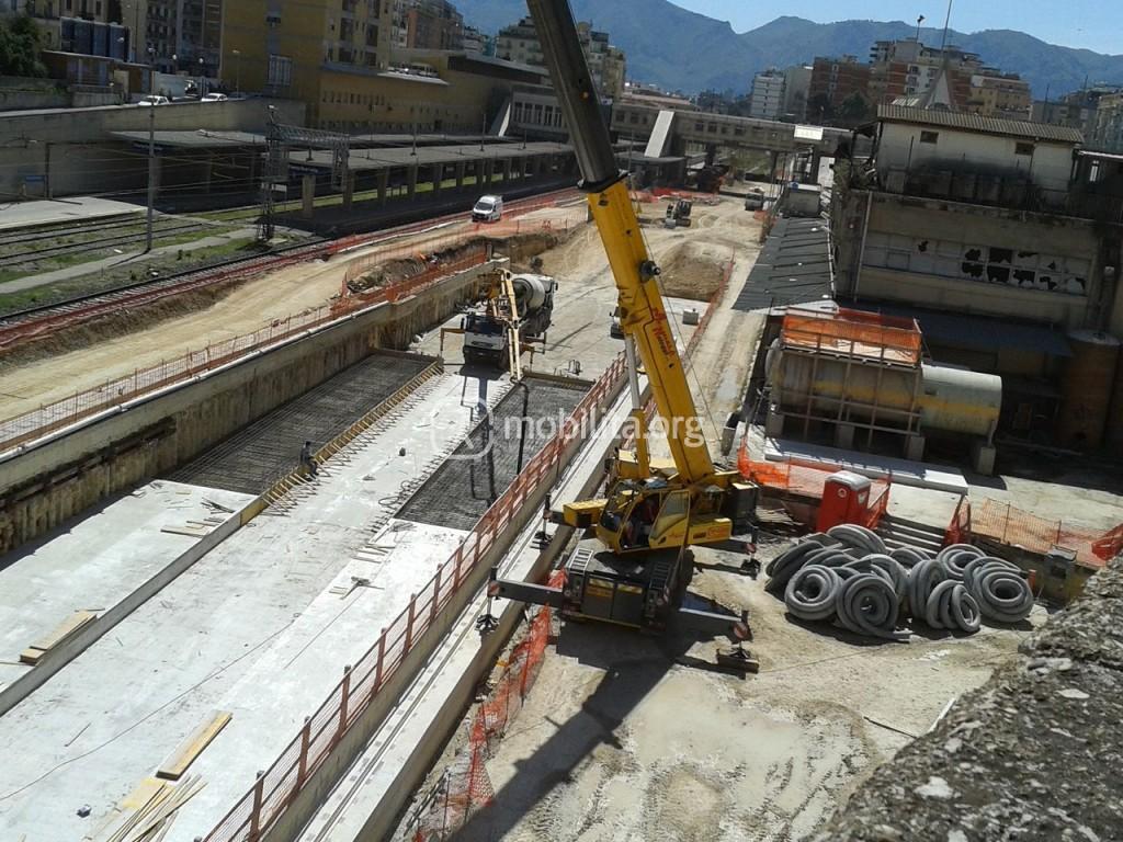 Dopo il completamento del cordolo laterale con tanto di binario per lo scorrimento del carro ponte, ecco finalmente giunti i primi pezzi della gru che servirà al montaggio della TBM che scaverà la seconda canna della galleria tra le stazioni di Notarbartolo e Belgio.