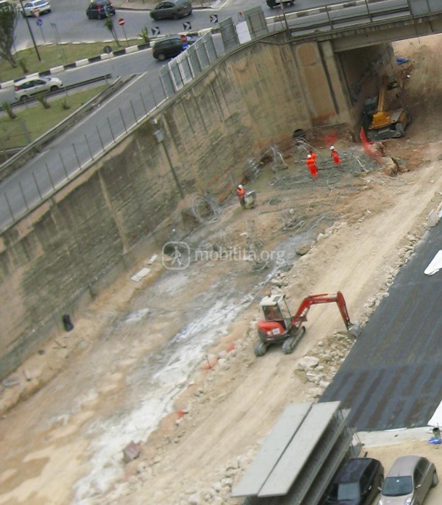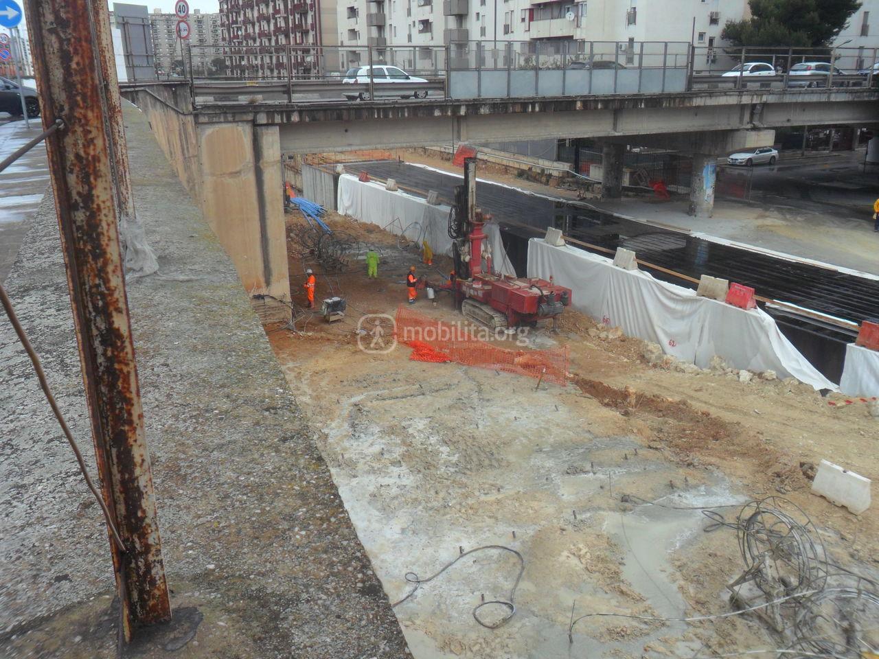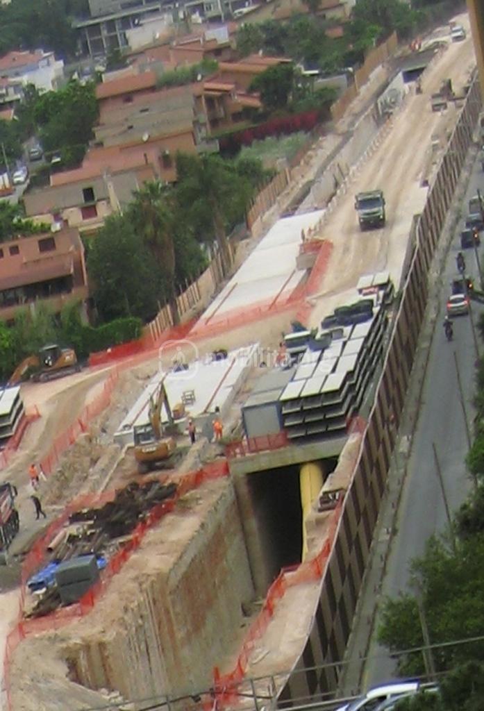 All’imbocco della tratta in artificiale della dispari, è in fase di esecuzione l’ultimo tratto di copertura a piano di campagna il quale si trova ad un livello inferiore rispetto al solettone della pari.