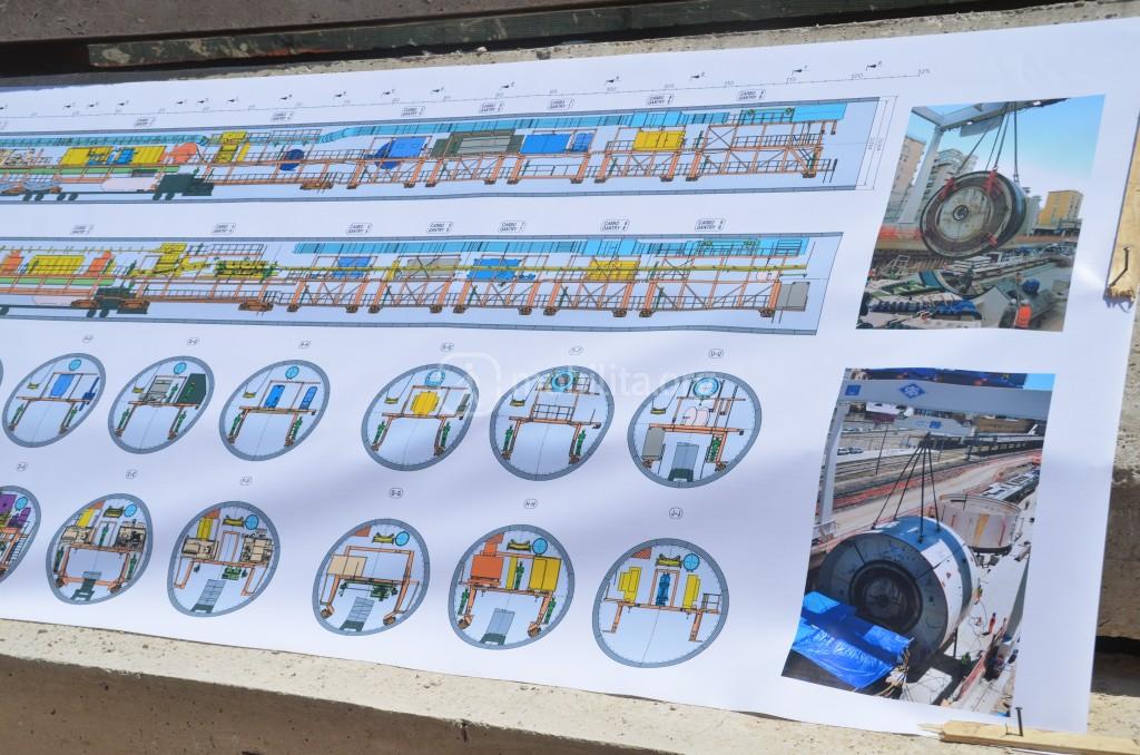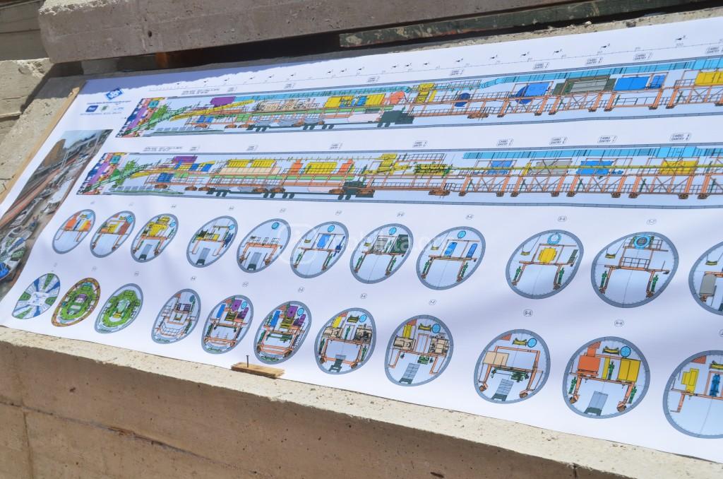 L’avanzamento dello scavo prevede un avanzamento di 1,5 metri al giorno. La talpa contemporaneamente scaverà al fronte e piazzerà i conci che rivestono la galleria
