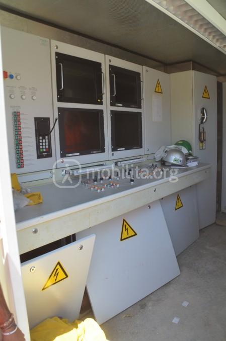 La cabina di controllo è composta da un consolle dove sono presenti quattro schermi che visivamente illustrano all’operatore le varie parti della macchina tramite telecamere e da una serie di schermate che visualizzano i “parametri vitali” del mezzo.