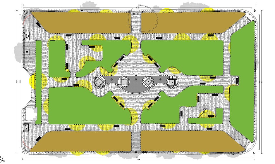 La seconda operazione riguarda il ridisegno del giardino nella sua parte centrale, per una nuova e più oculata soluzione e riqualificazione della fontana centrale esistente. In questo caso si è optato di intervenire eliminando la vasca-fontana difficile da manutenere e da salvaguardare. In secondo luogo, le interazioni con il contesto, ci suggerivano di relazionare l’asse centrale del giardino con l’ingresso alla ex stazione ferroviaria antistante il giardino. In questo modo l’apertura dell’asse della piazza, con l’eliminazione della fontana centrale, ci sembrava appropriato e opportuno.