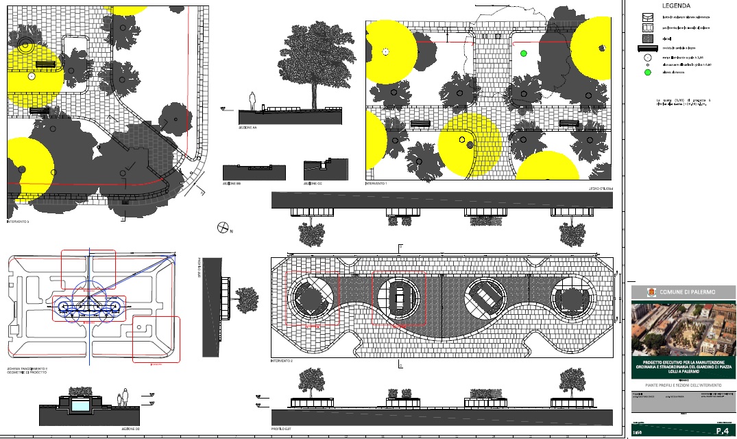 Questa prima operazione ci ha portato all’intero rifacimento del perimetro del giardino, del sistema di smaltimento delle acque meteoriche e degli ingressi diagonali che caratterizzano il disegno del giardino a nord del quadrilatero (lato Teatro Dante), mentre il perimetro e il disegno del giardino rimane inalterato sul lato del distributore carburante.
