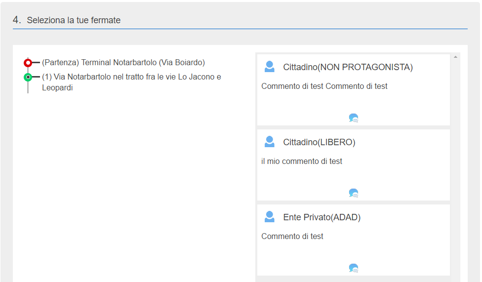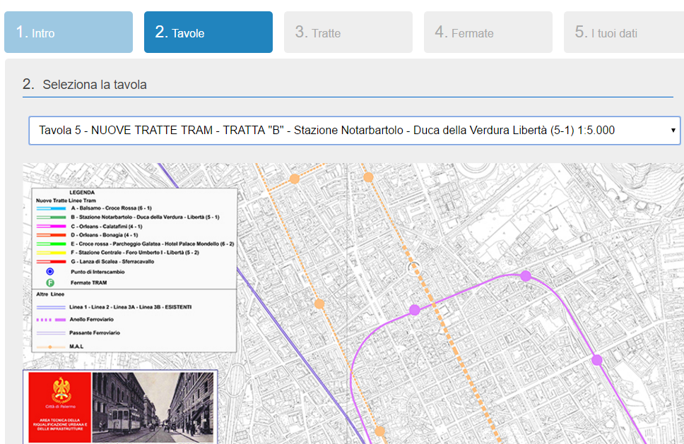 L’ufficio del webmaster del Comune di Palermo, seguendo la nuova normativa sugli appalti, ha inoltre creato una piattaforma (attiva da domani) che consente a ogni utente di poter rilasciare commenti e spunti su ognuna delle sette proposte. In particolare è possibile aggiungere un commento anche sulla singola fermata o sulla relazione documentale, attraverso una consultazione e una interazione guidata.