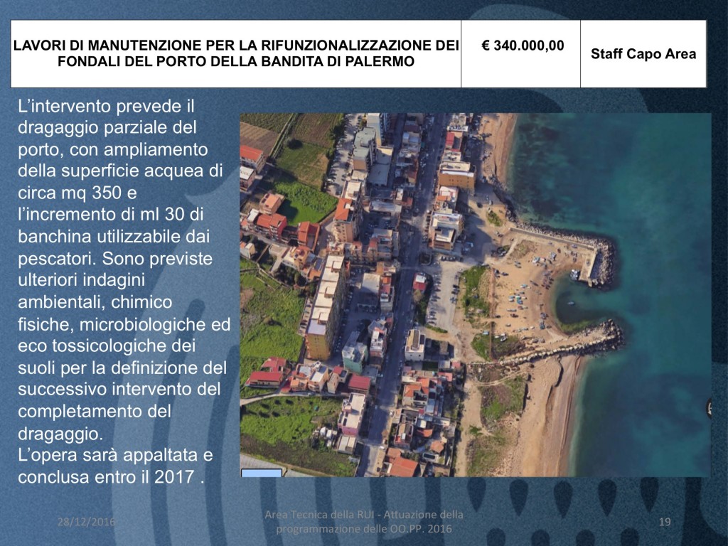 interventi per la sicurezza dei veicoli e dei pedoni. L’appalto segue uno di medesimo oggetto attivato in questi giorni - LAVORI DI MANUTENZIONE PER LA RIFUNZIONALIZZAZIONE DEI FONDALI DEL PORTO DELLA BANDITA DI PALERMO (costo 340 mila euro)