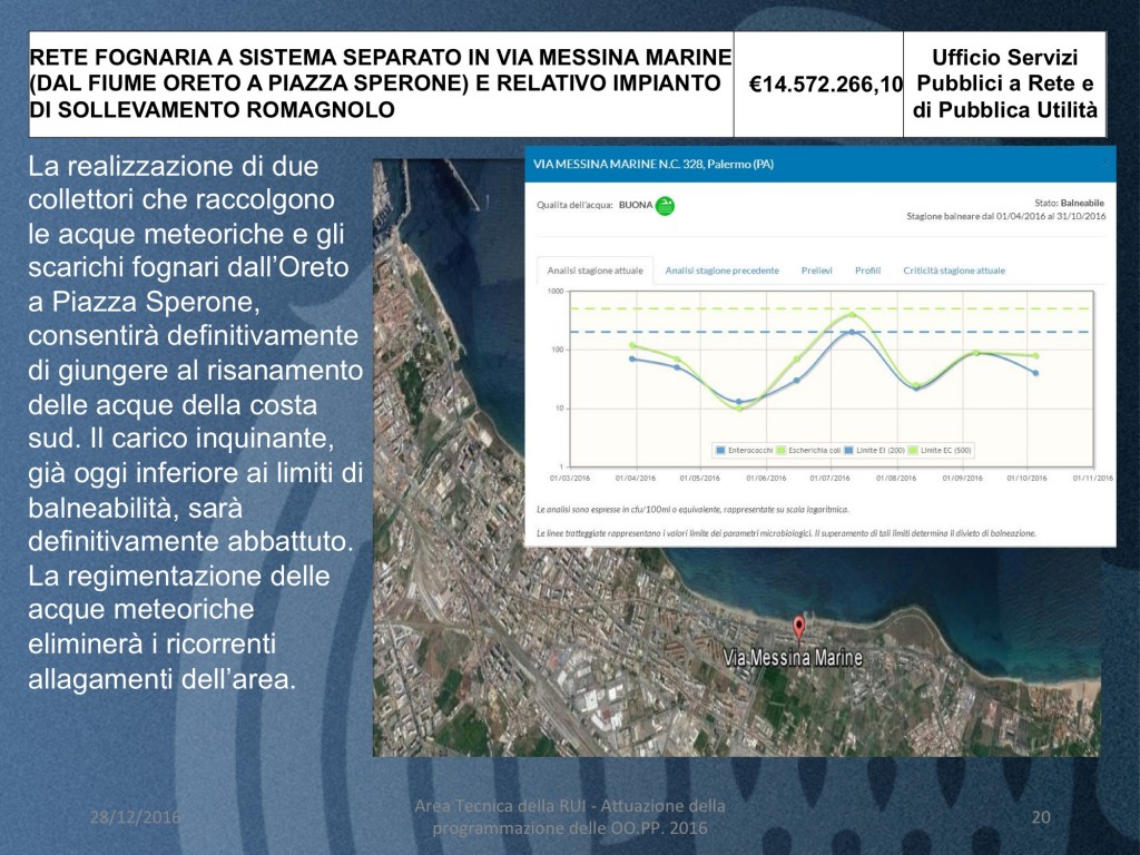 - RETE FOGNARIA A SISTEMA SEPARATO IN VIA MESSINA MARINE (DAL FIUME ORETO A PIAZZA SPERONE) E RELATIVO IMPIANTO DI SOLLEVAMENTO ROMAGNOLO (costo 14 milioni e 572 mila euro)