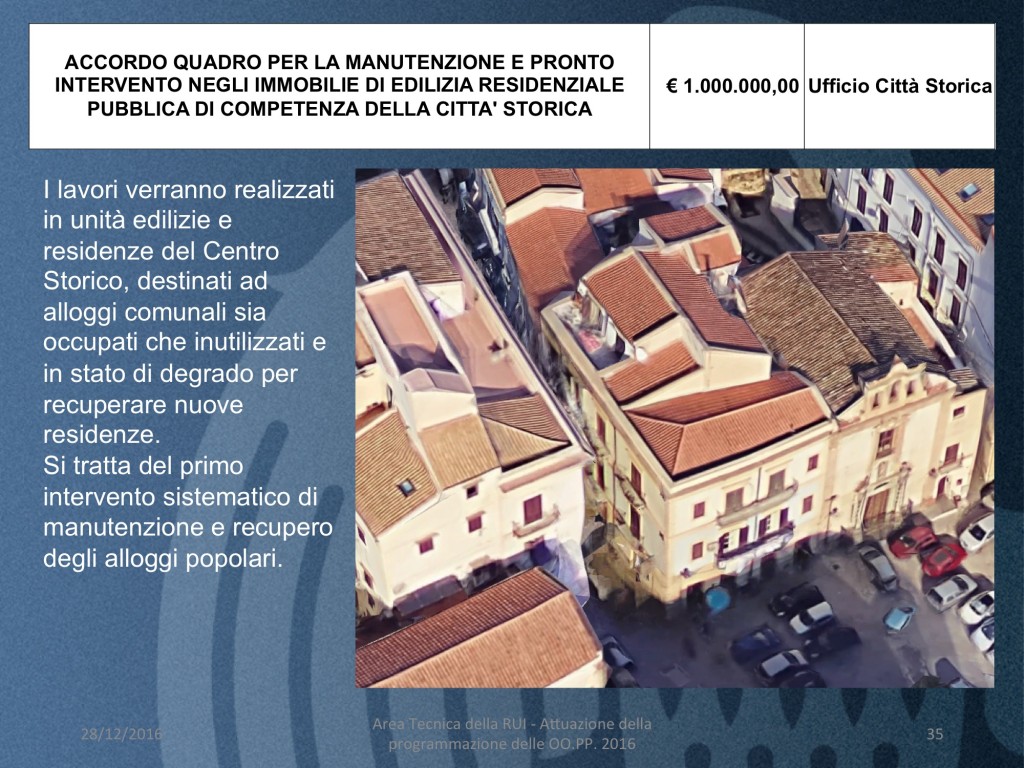 - ACCORDO QUADRO PER LA MANUTENZIONE E PRONTO INTERVENTO NEGLI IMMOBILIE DI EDILIZIA RESIDENZIALE PUBBLICA DI COMPETENZA DELLA CITTA’ STORICA (costo 1 milione di euro)