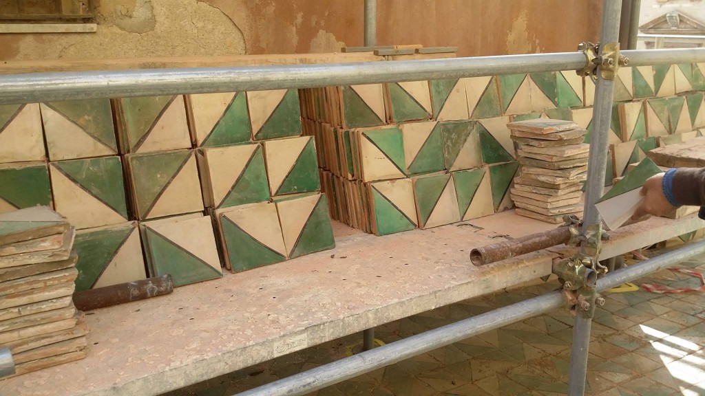 Dalle foto si nota le maioliche originali sono state rimosse e rimpiazzate con delle maioliche moderne.