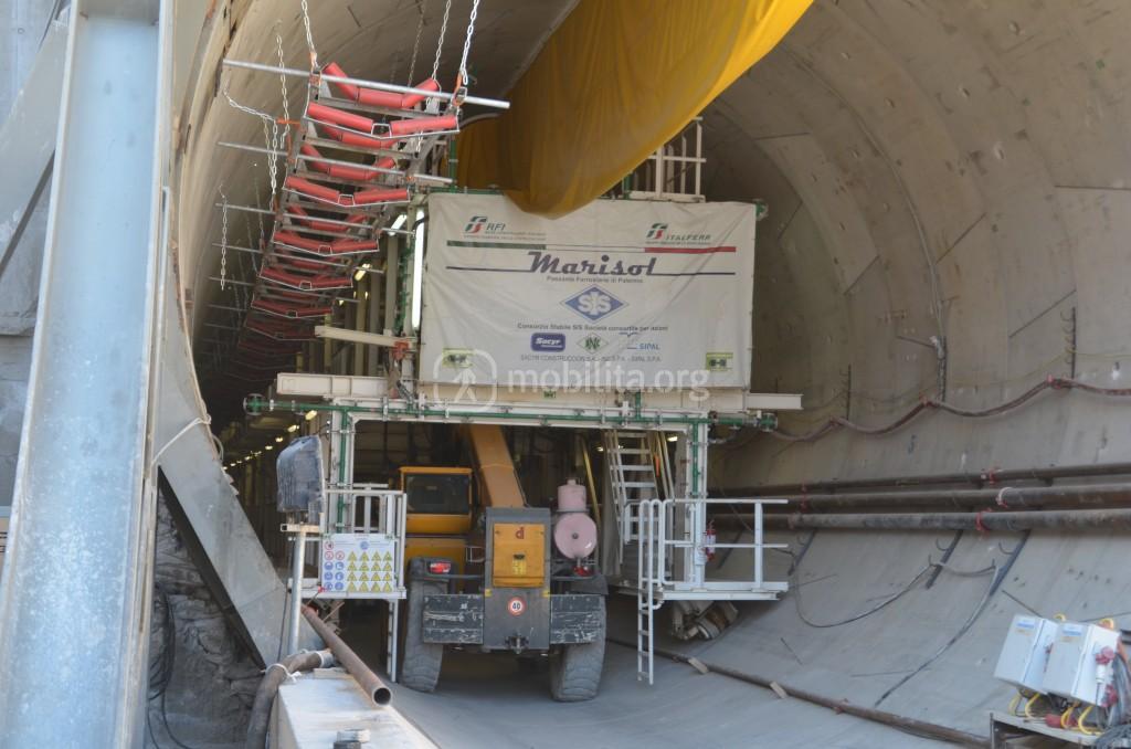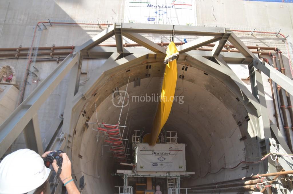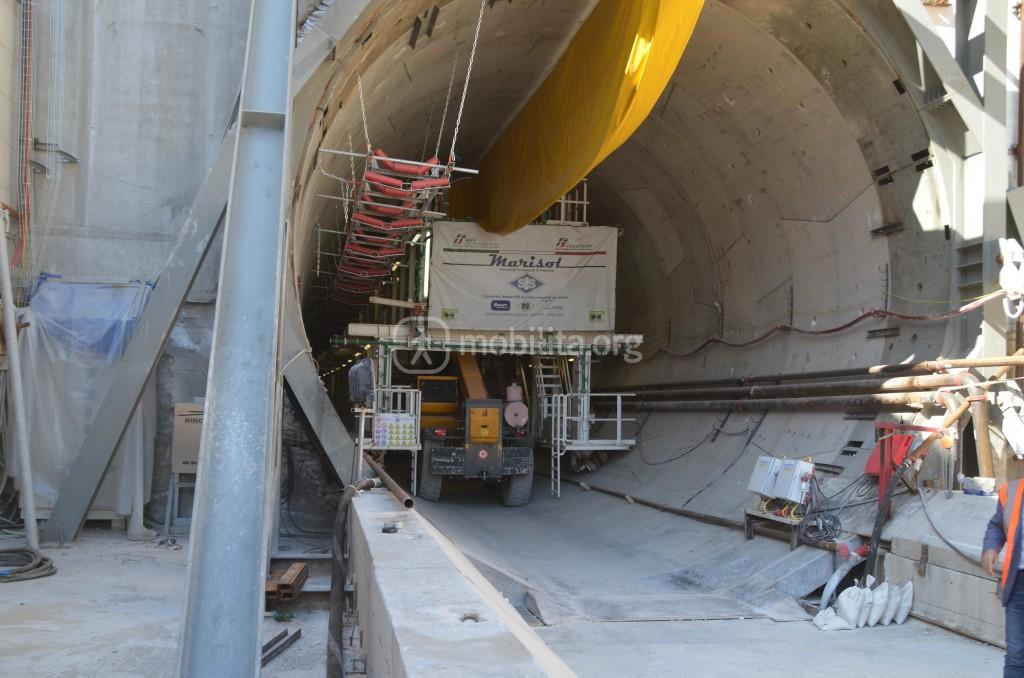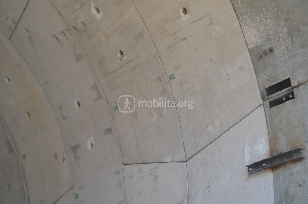 Al momento ogni anello è legato a quello precedente e successivo con delle piastre, poiché trattandosi di avanzamento dentro ad un tunnel già precedentemente scavato è necessario riempire lo spazio che si crea tra la parete esistente e la parete di conci realizzata da Marisol, ecco perché questa è una fase molto delicata che rispetto all’avanzamento tradizionale richiede massima cautela.