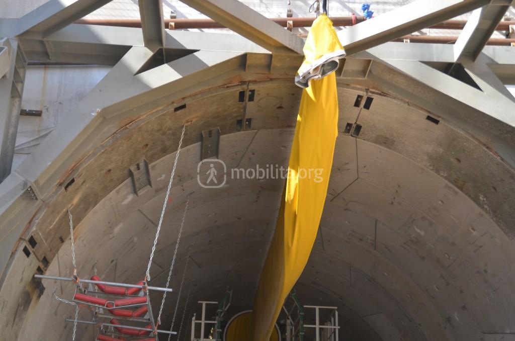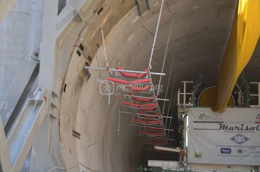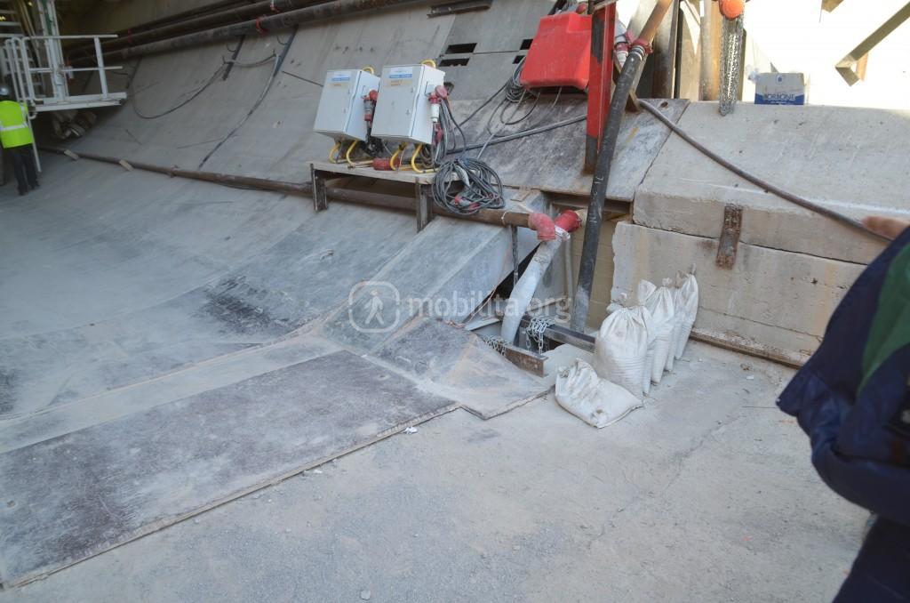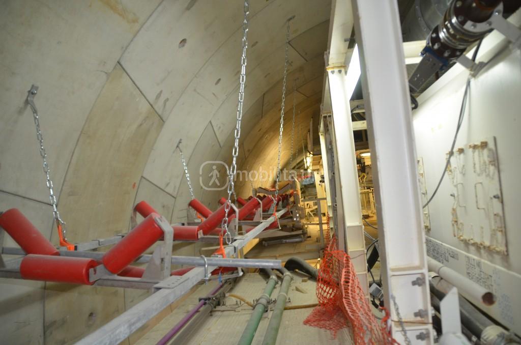 Come potete notare sono state già installate le guide per il nastro trasportatore che porterà la terra di scavo dalla macchina all’area di stoccaggio fuori dal cantiere.