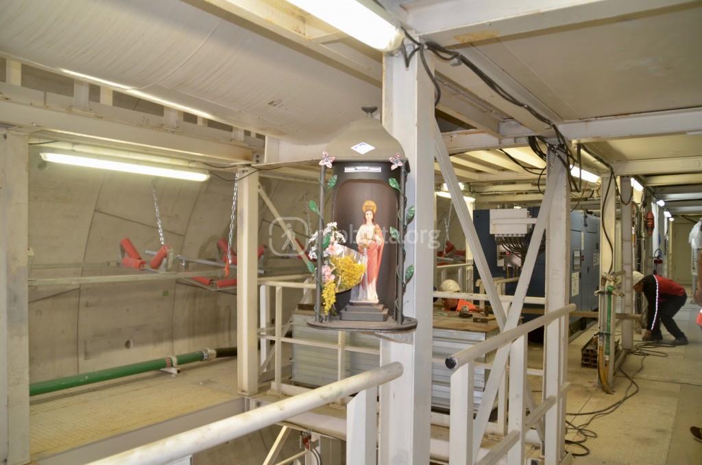 Nelle foto noterete la statuetta di Santa Barbara, protettrice di chi lavora in galleria. La statuetta è stata “prestata” dal geometra Esposito, ma l’intera struttura in acciaio che la ospita è stata realizzata dalle maestranze Sis. Una piccola curiosità che ci hanno mostrato con orgoglio, non solo per far notare la grande professionalità, ma anche perché con la scusa ci hanno spiegato che tutto ciò che vedevamo intorno a noi o quasi era stato realizzato dagli operai.