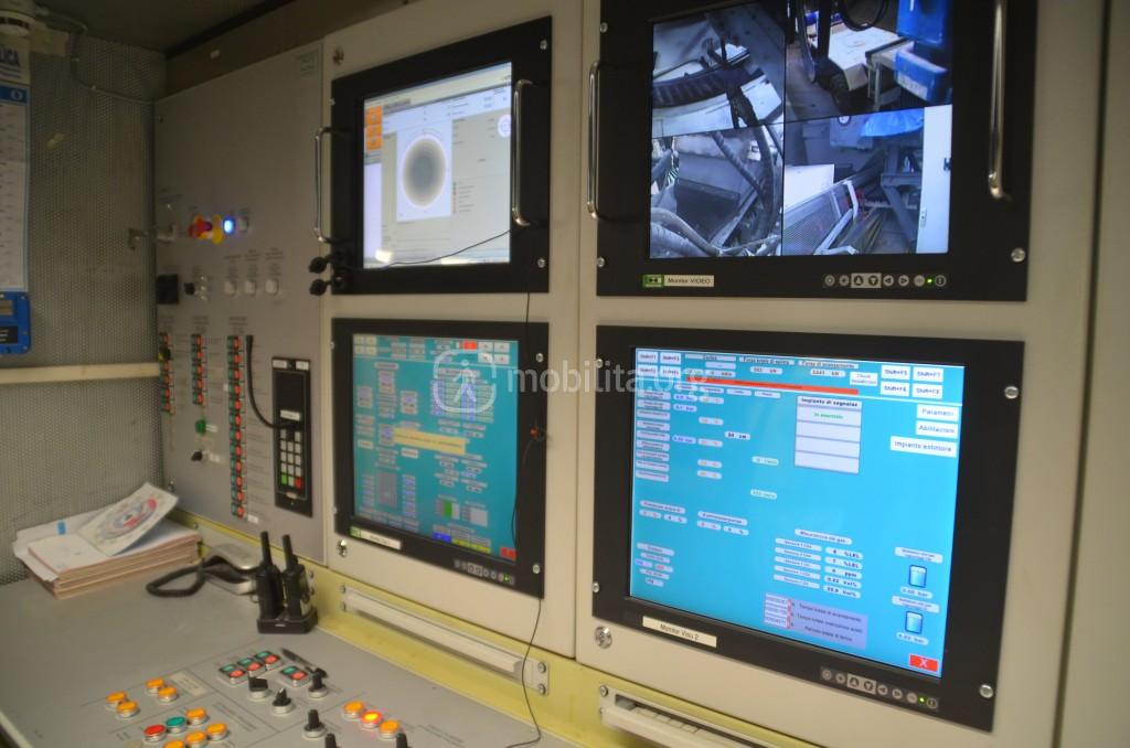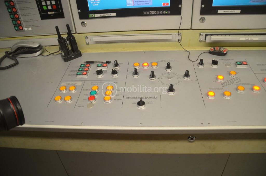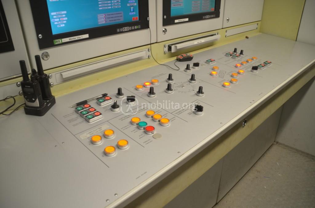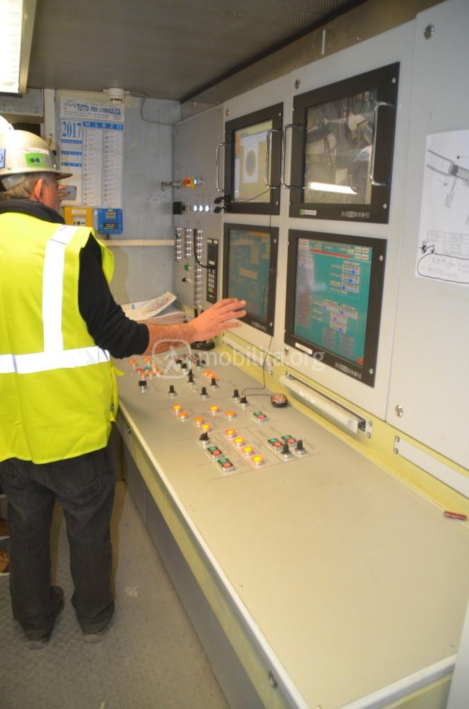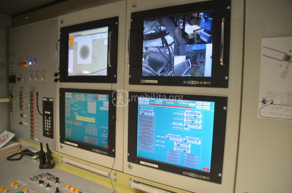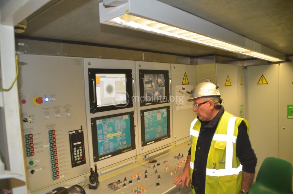 La camera di controllo dov’è contenuto il cervello dell’enorme talpa è una piccolissima stanzetta dove all’interno vi spazio per un solo operatore che ha sotto controllo tutto.