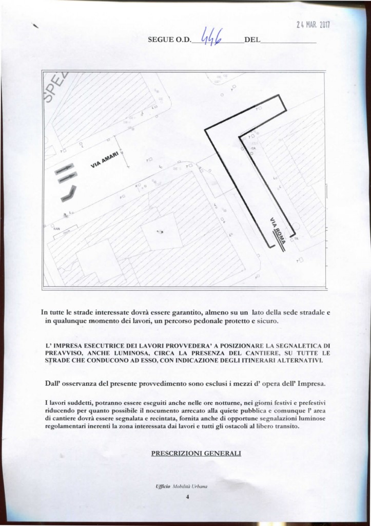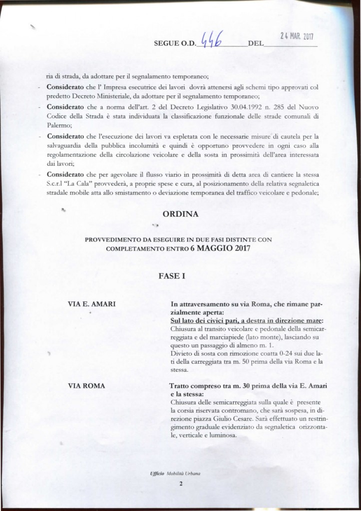 Ecco in dettaglio l’ordinanza n° 446 del 24/03/2017: