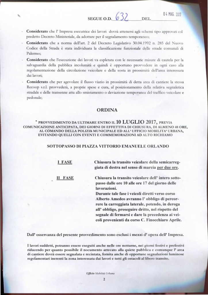 A stabilirlo è l’ordinanza n° 623 del 4 Maggio 2017 tramite la quale si apprende che i lavori saranno articolati su due fasi: