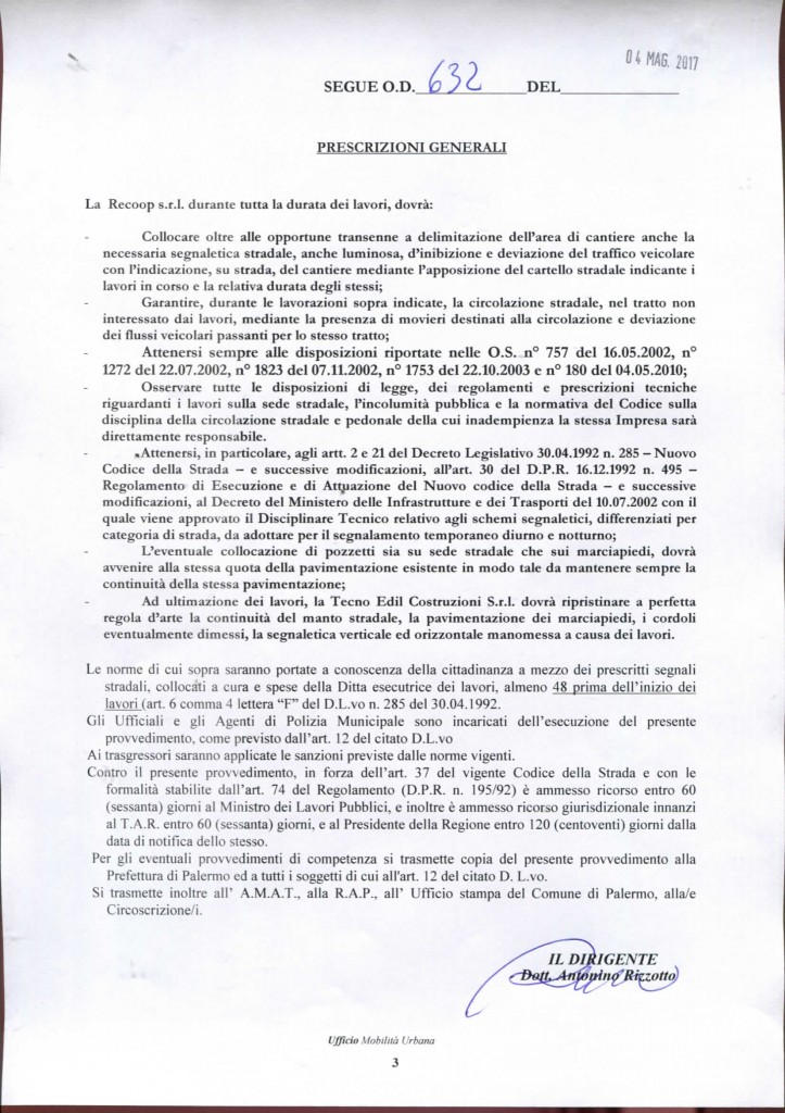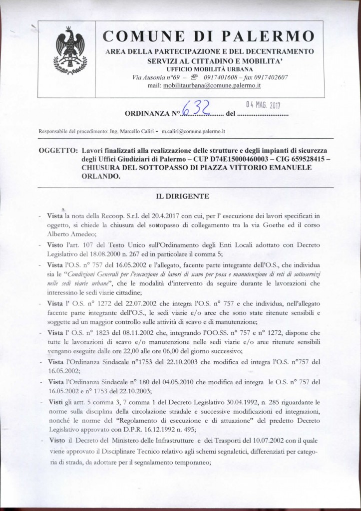 Ecco copia dell’ordinanza: