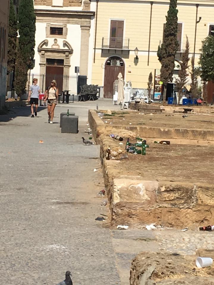 Perchè la RAP non provvede, così come già avvenuto alla Vucciria, alla collocazione di cestini tutt’attorno la piazza in modo da invogliare a gettare il rifiuto nell’apposito cestino e non a terra? Diventando pericoloso per tutti.