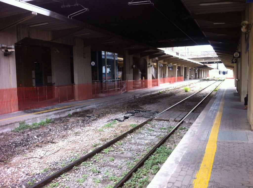 I lavori consistono nella completa sostituzione dell’armamento (massicciata e traverse) del binario 1.