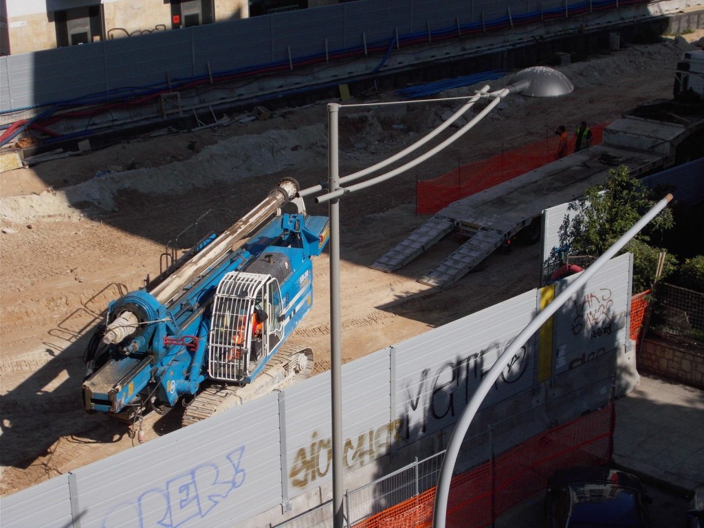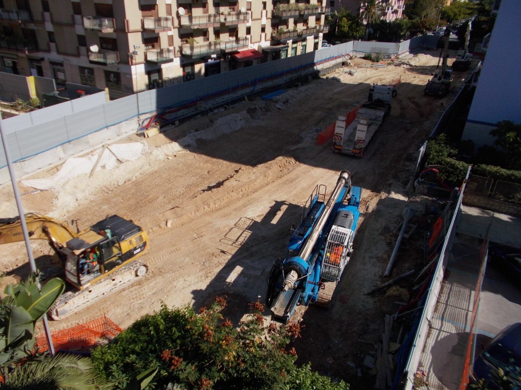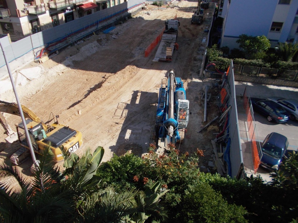 Dalle foto possiamo dedurre che sono stati terminate le palificazioni e adesso occorrerà scavare per arrivare alla quota del piano di posa del solettone, armarlo, gettare il cls e ricoprire il tutto ripristinando lo stato dei luoghi prima dell’inizio dei lavori.