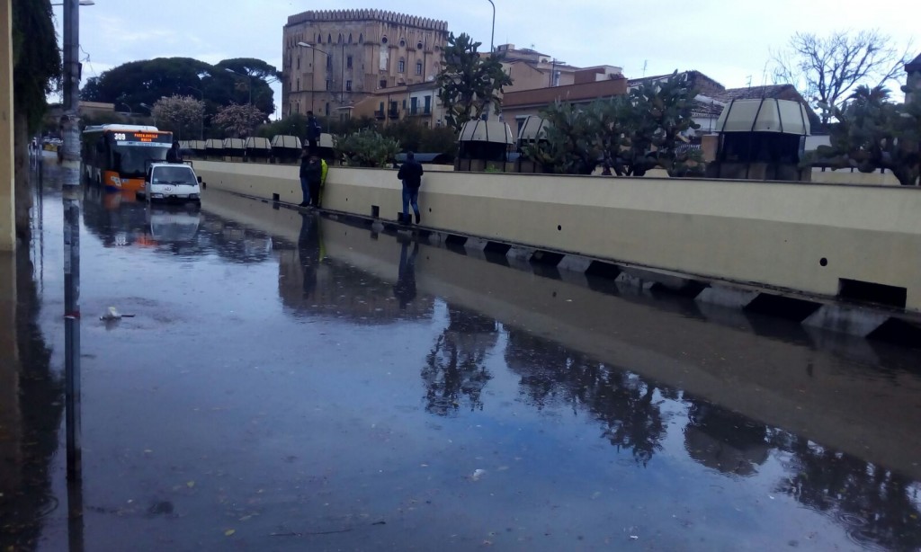 Oggi è andata in tilt la zona di Piazza Indipendenza. Tutto è iniziato con l’allagarsi di Corso Re Ruggero, poi l’acqua ha proseguito nella sua discesa verso la via Del Bastione.