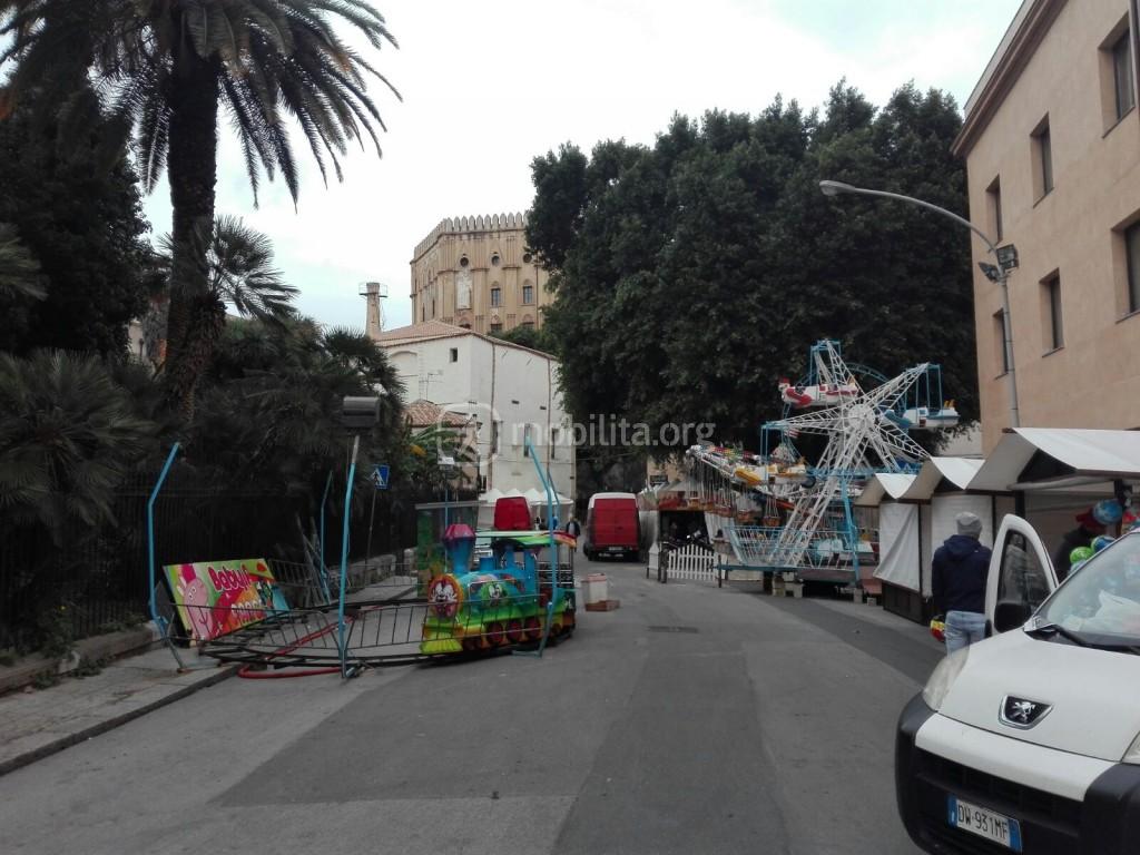Non capita spesso, ma credo di potere essere sostanzialmente d’accordo. Giostre temporanee sull’asfalto di una strada di Palermo, non è che hanno trapanato la Cappella Palatina per piantare giochi e attrazioni… Un po’ di leggerezza ogni tanto non guasta.