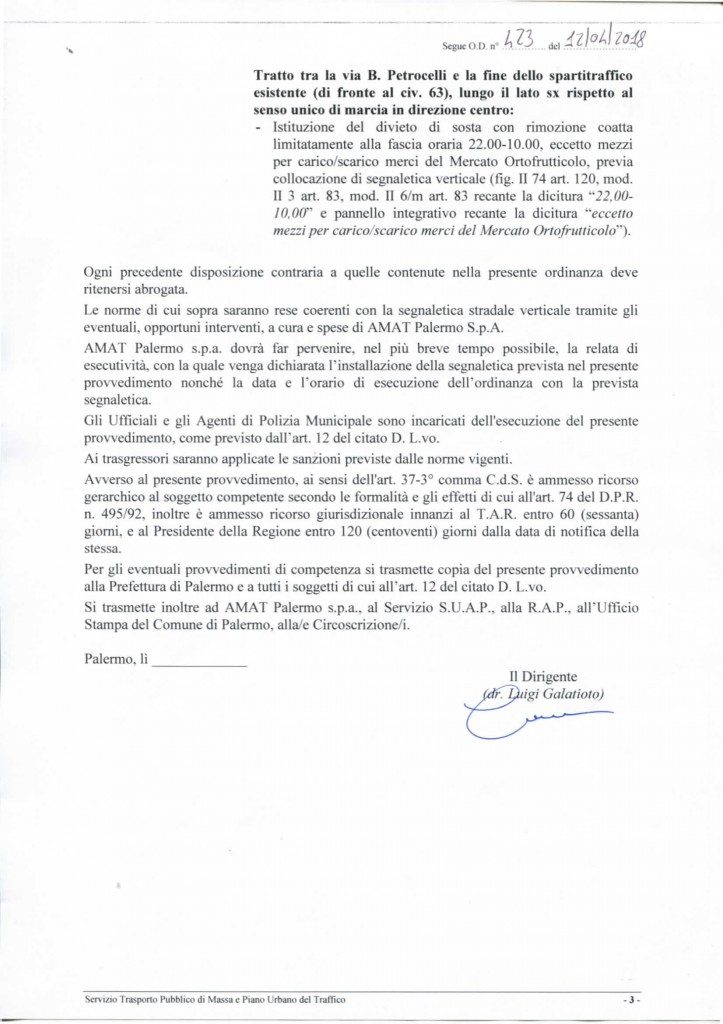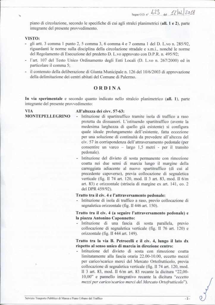 In allegato, l’Ordinanza Dirigenziale n. 423 del 12/04/2018: