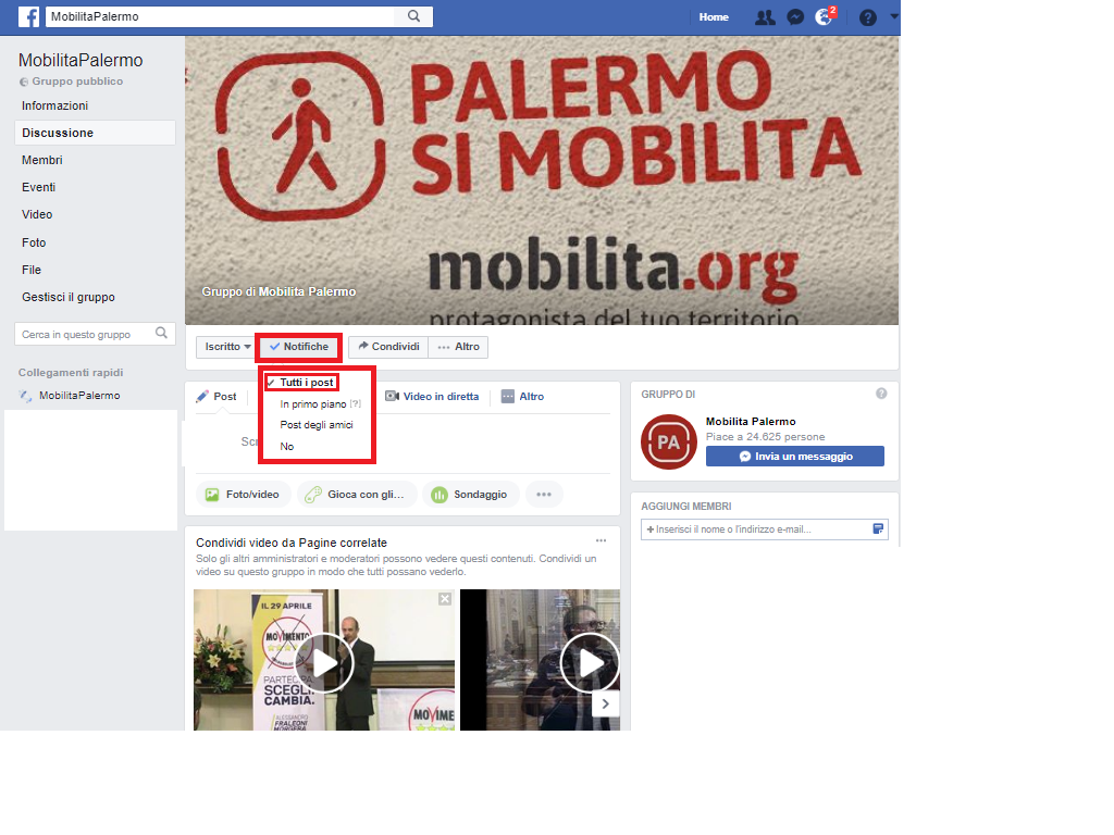 - per seguire il gruppo: cliccare su “notifiche”, poi selezionare su “tutti i post”.
