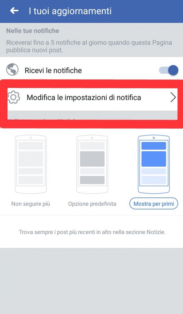 - per seguire la pagina, bisogna cliccare su “segui già”, poi cliccare su “modifica le impostazioni di notifica”, ed infine spuntare sulla voce “standard”.