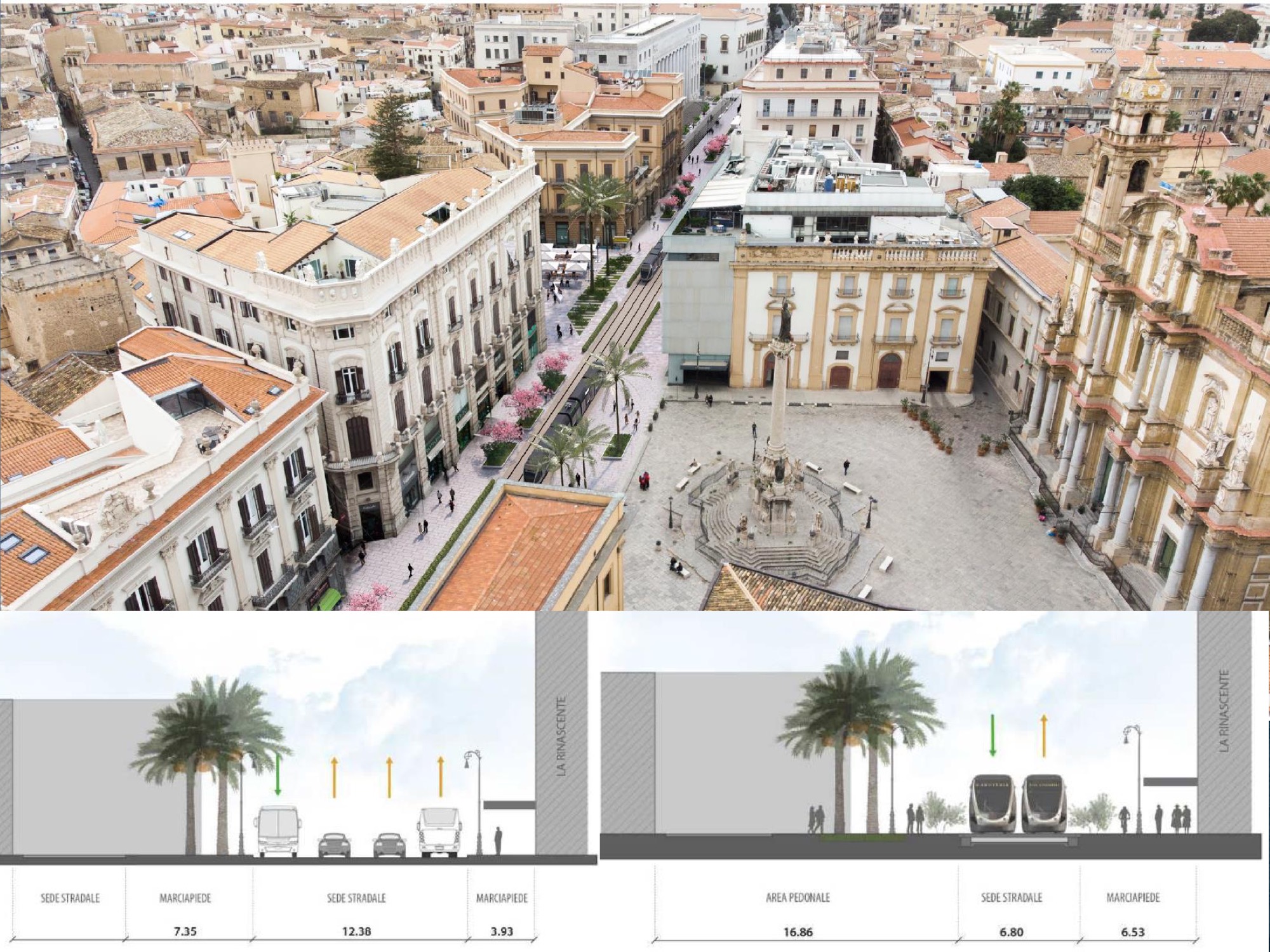 Per il resto, non potrà non essere una Palermo migliore la città disegnata in questi rendering: maggiori collegamenti con le periferie, maggiori spazi pedonali, maggiore frequenza dei mezzi di trasporto, centro storico chiuso alle auto.