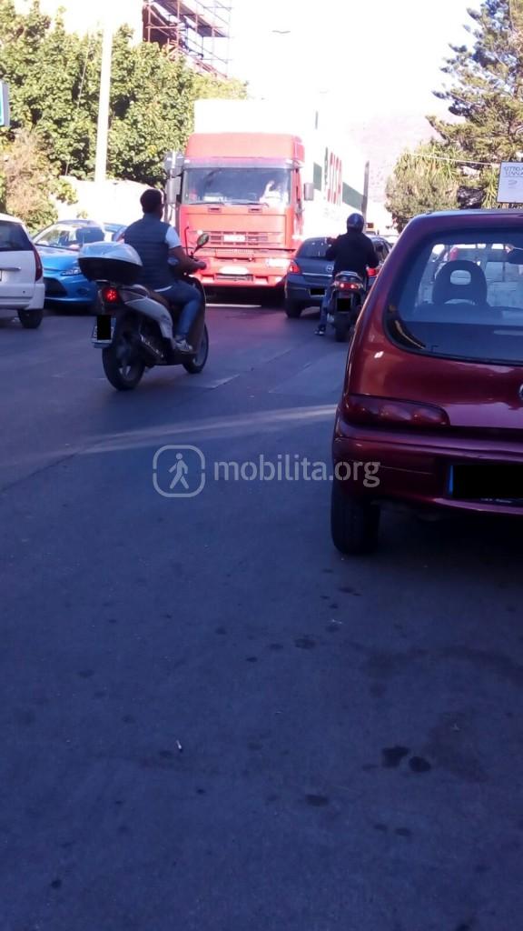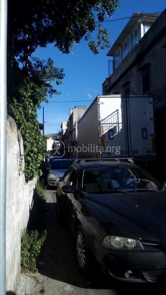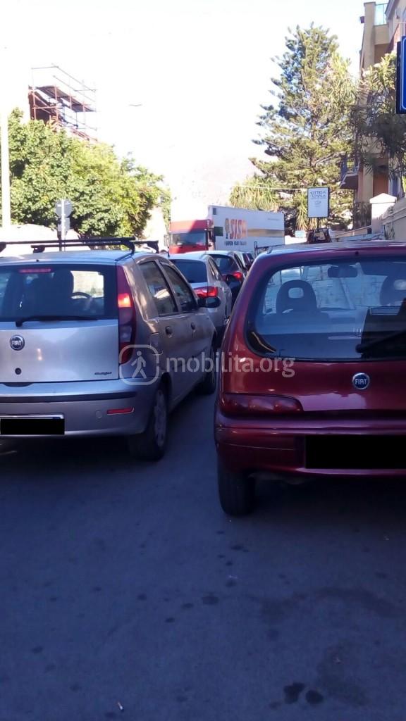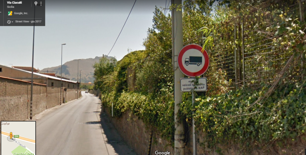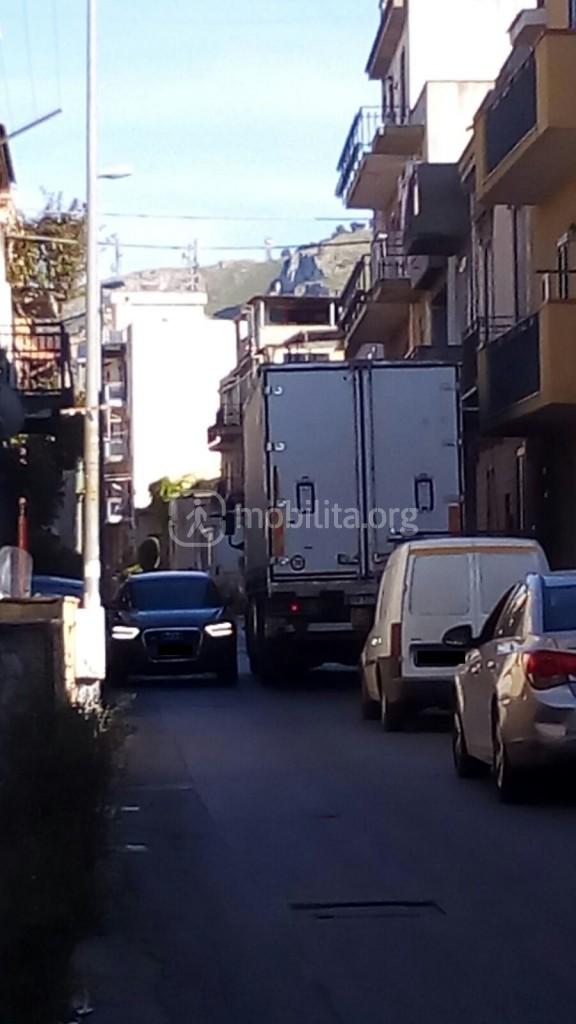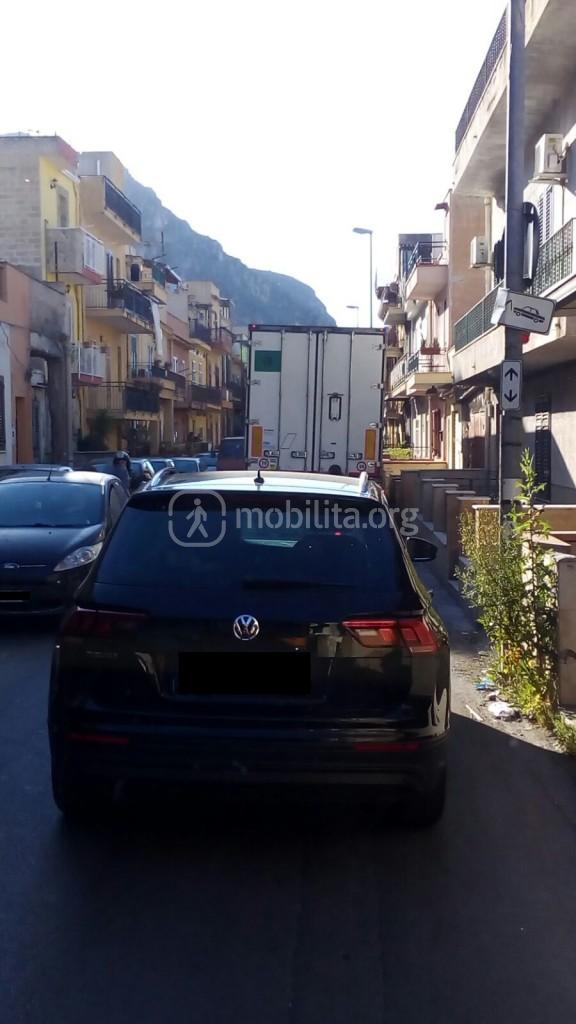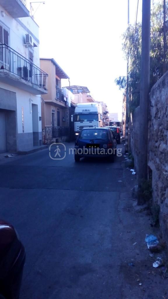 Solitamente questi tir passano da Ciaculli per raggiungere il comune di Belmonte Mezzagno. Molti autisti ignorano il cartello di divieto di accesso, transitando comunque da questa via, rendendola trafficata e pericolosa. Questa borgata, come molte altre, non ha i marciapiedi e i bambini e tutti i pedoni sono costretti a camminare per strada, mischiandosi con le auto. Inoltre lungo la strada ci sono anche vari divieti di sosta, non rispettata dagli automobilisti. In questa zona sono molto diffusi i box auto per posteggiare l’auto all’interno, quindi mi domando: ma perché i residenti non posteggiano l’auto dentro?