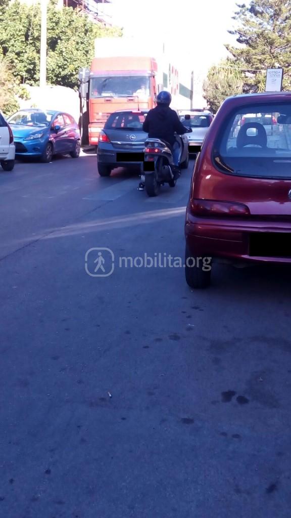 Bisognerebbe chiamare i vigili per multare innanzitutto chi parcheggia il mezzo in divieto di sosta.